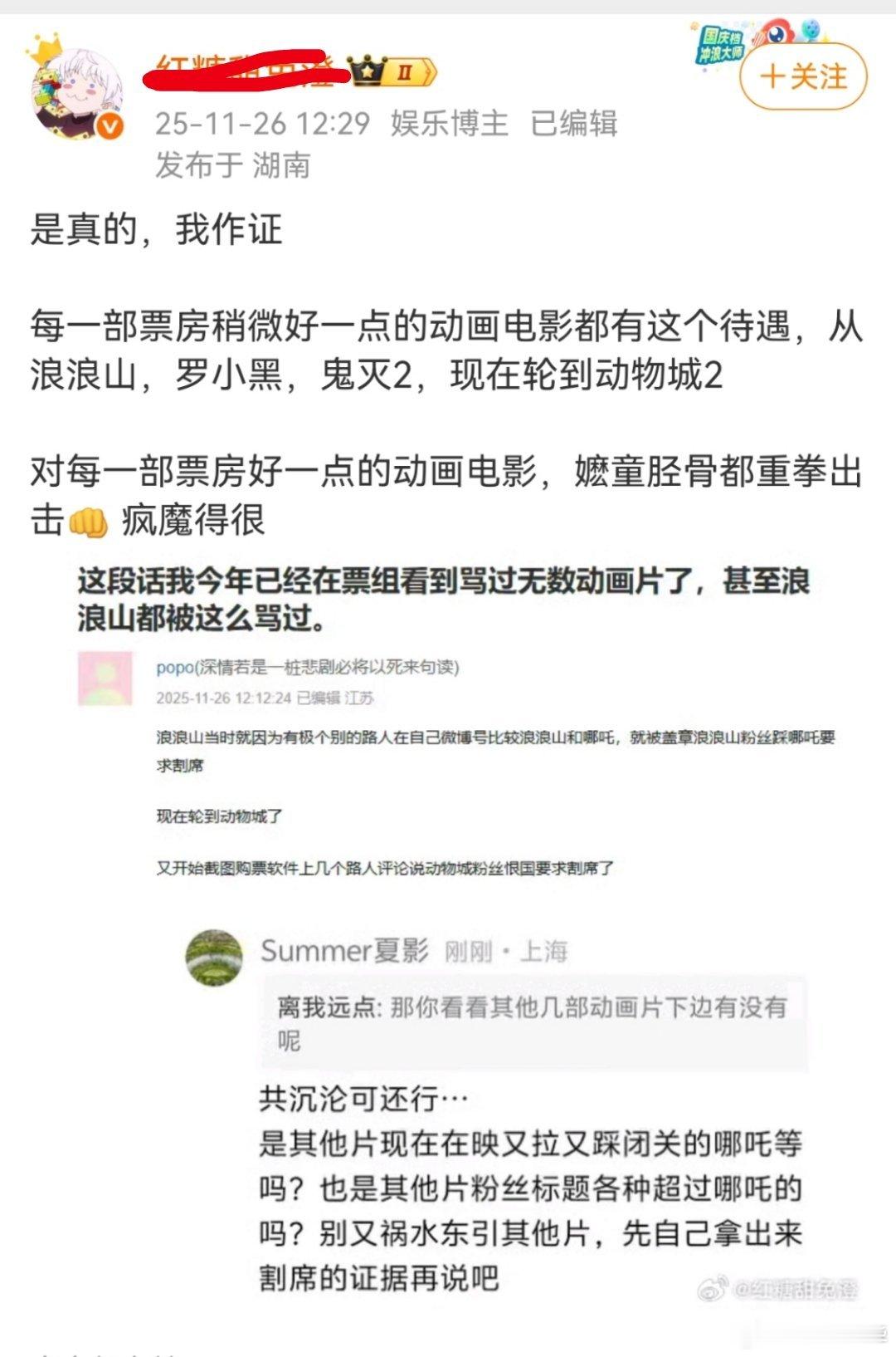 真是贼喊捉贼,预售拉着哪吒2的是谁,还没播就在B站找博主拉踩哪吒2的是谁,至于鬼灭,拳打EVA,脚踩哪吒2,突然就扮演受害人了??
