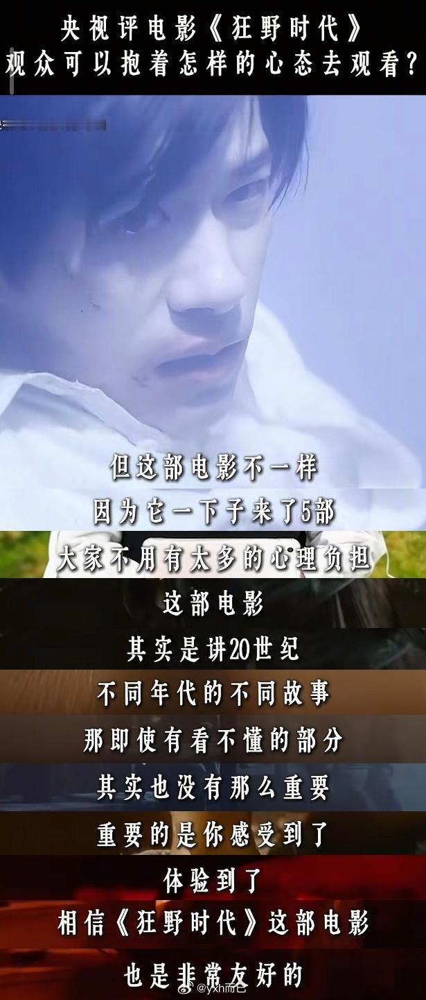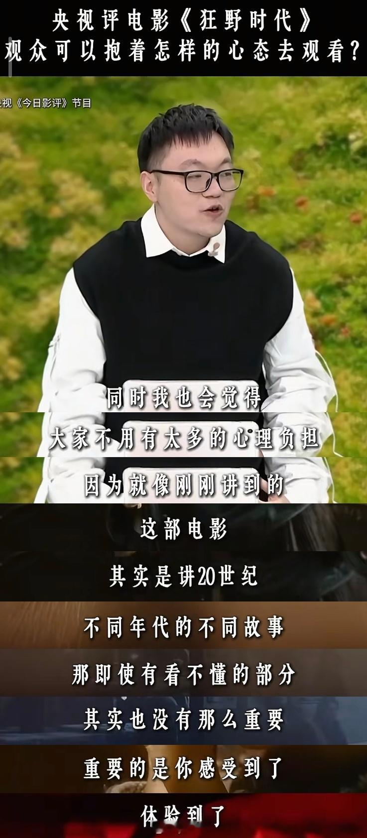 央视评看狂野时代需要更开放的心态央视评电影《狂野时代》影片刻意打破线性故事逻辑,用留白和隐喻调动观众参与解读,因此不必纠结"标准答案",而应将其视为"敞开审美的体验"!