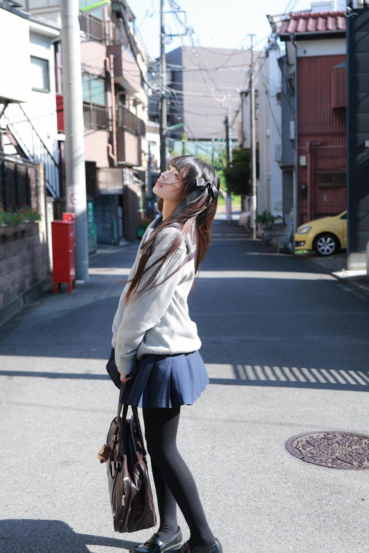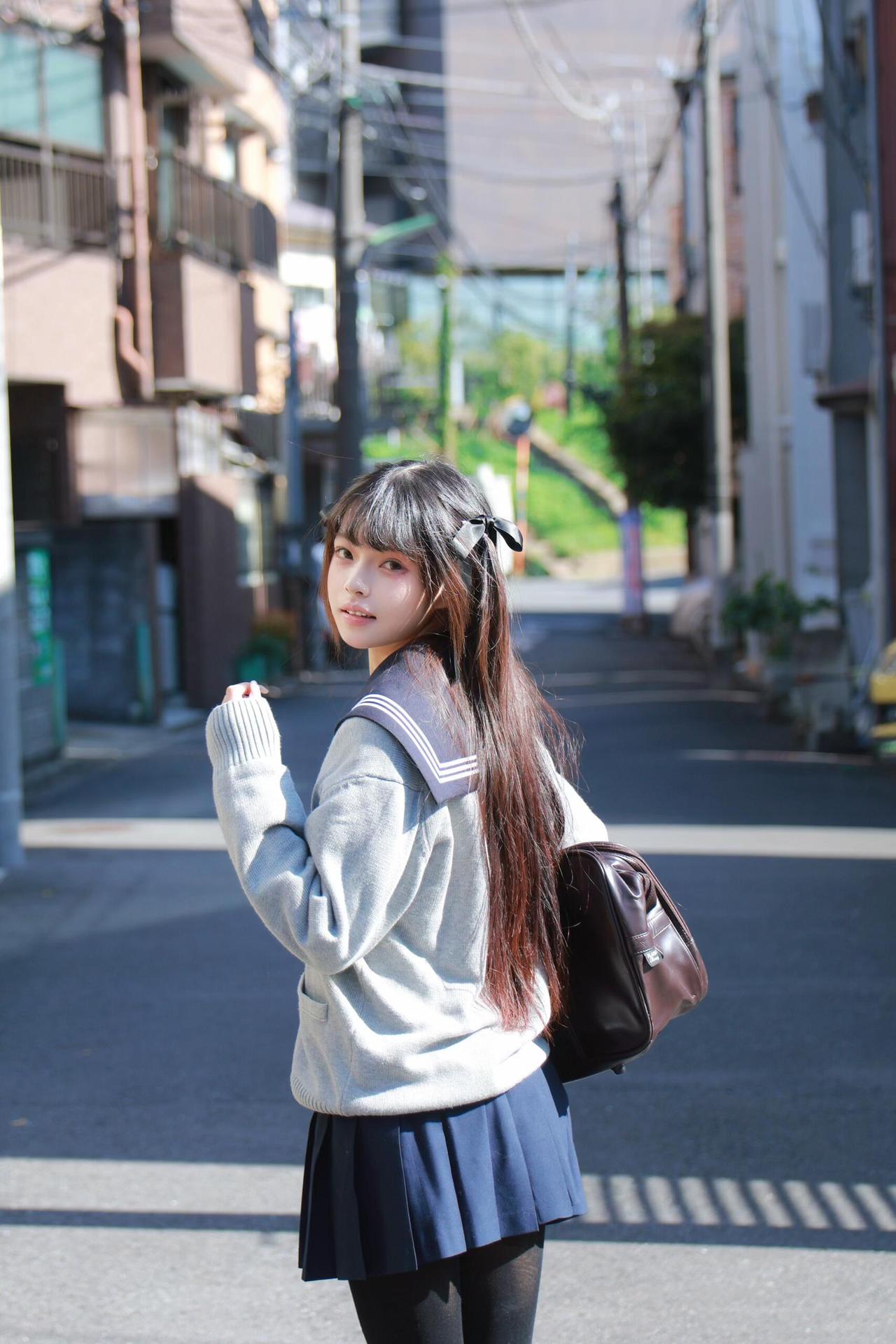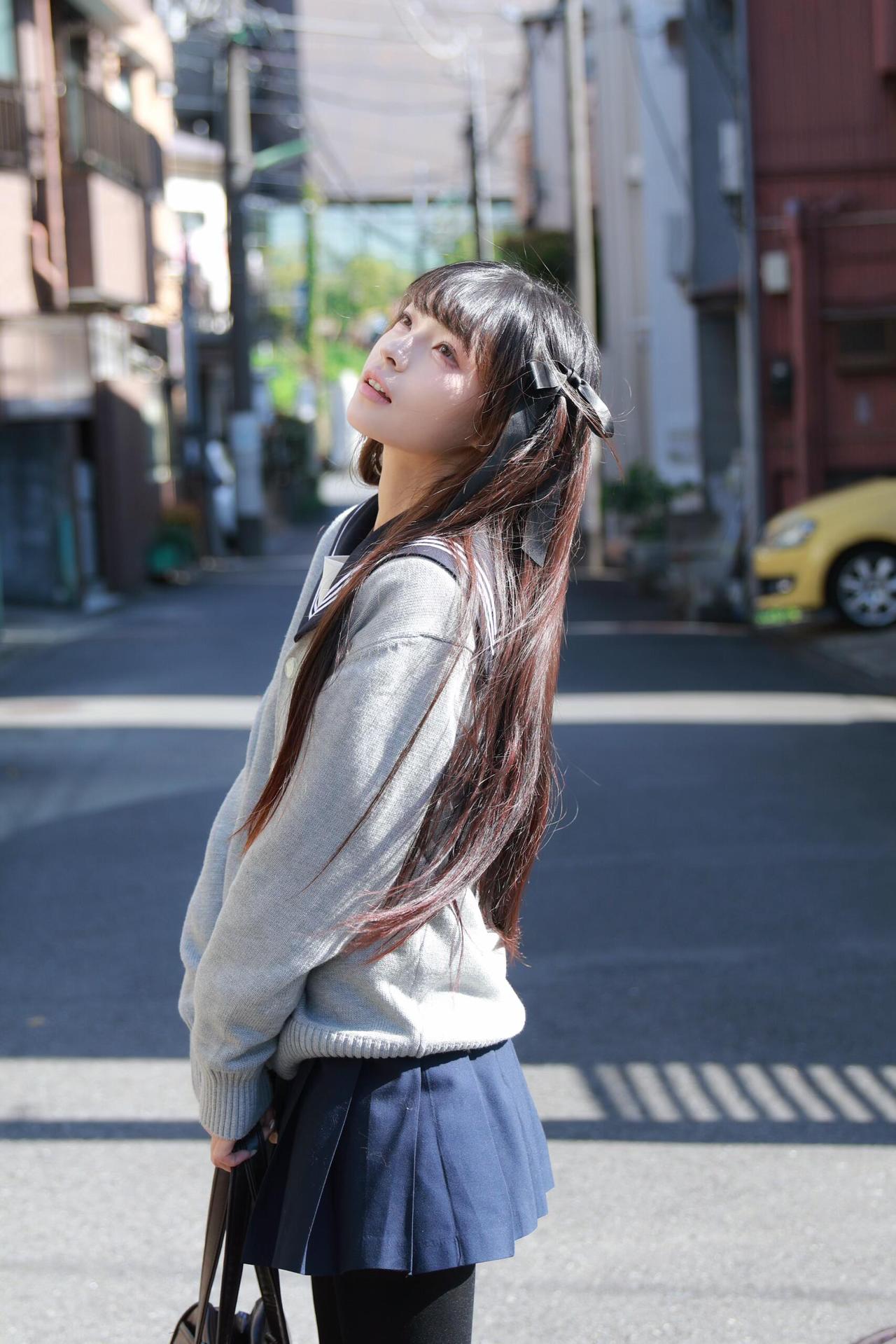 日系少女穿搭|浅灰开衫+深蓝百褶裙,秋冬氛围感这不就来了!