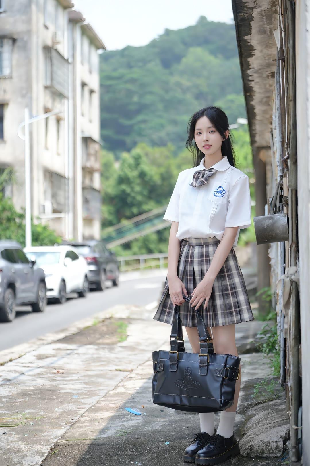 少女漫步在旧巷,青春洋溢,阳光洒满发梢。
