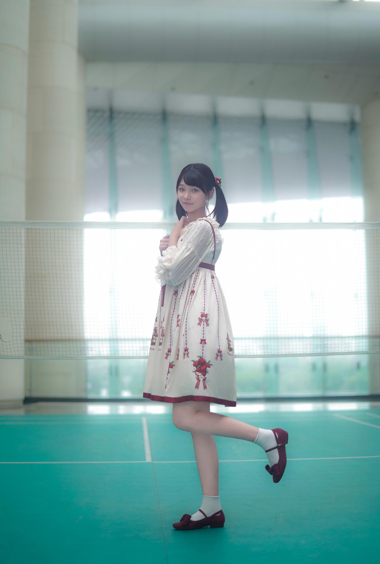 少女心满满,网球场上穿洛丽塔裙的甜美女孩