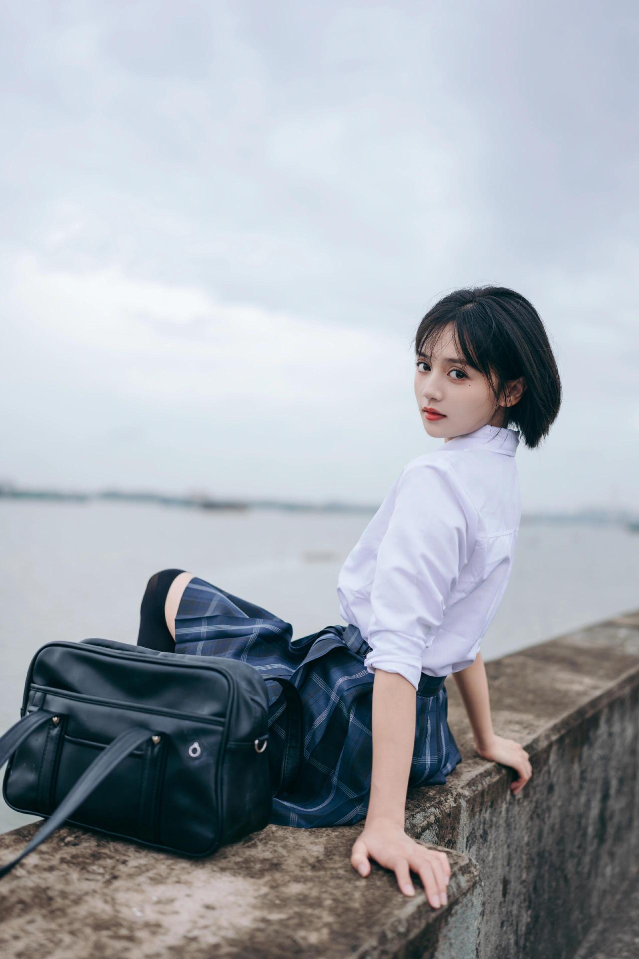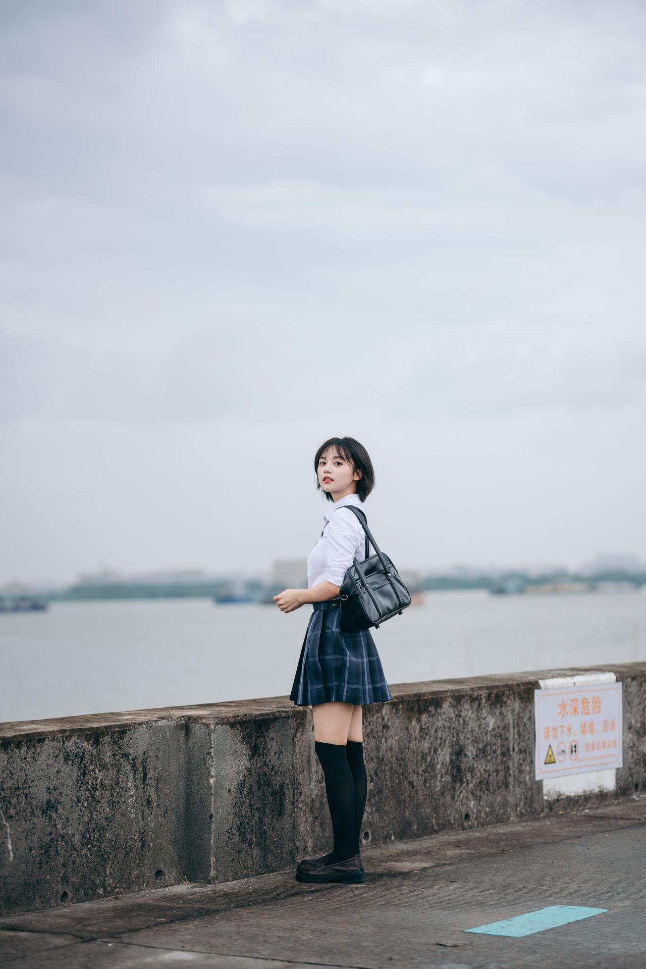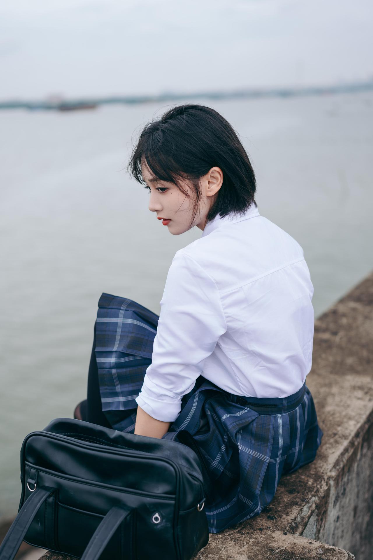 青春校园风,少女与海边的浪漫邂逅