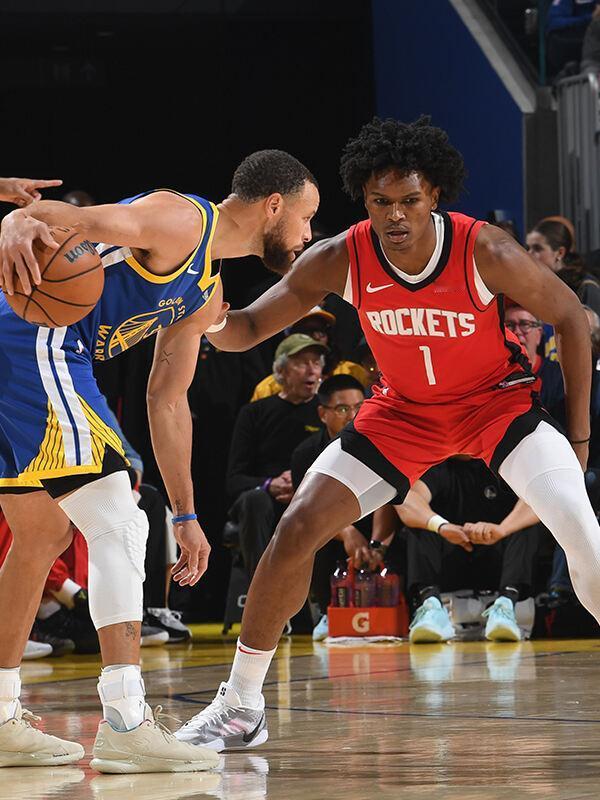 火箭队未来的后场核心基本确定了! 后场以谢泼德和阿门为核心,谢泼德的发展上限是库里,下限是特雷杨,谢泼德的短板是防守,而这恰好是阿门的强项。 阿门汤普森目前已经成为攻防一体的球员,阿门的防守和突破都很有威胁,缺点是投篮不稳定,而投射是谢泼德的强项,可以说阿门和谢泼德的后场组合非常互补。