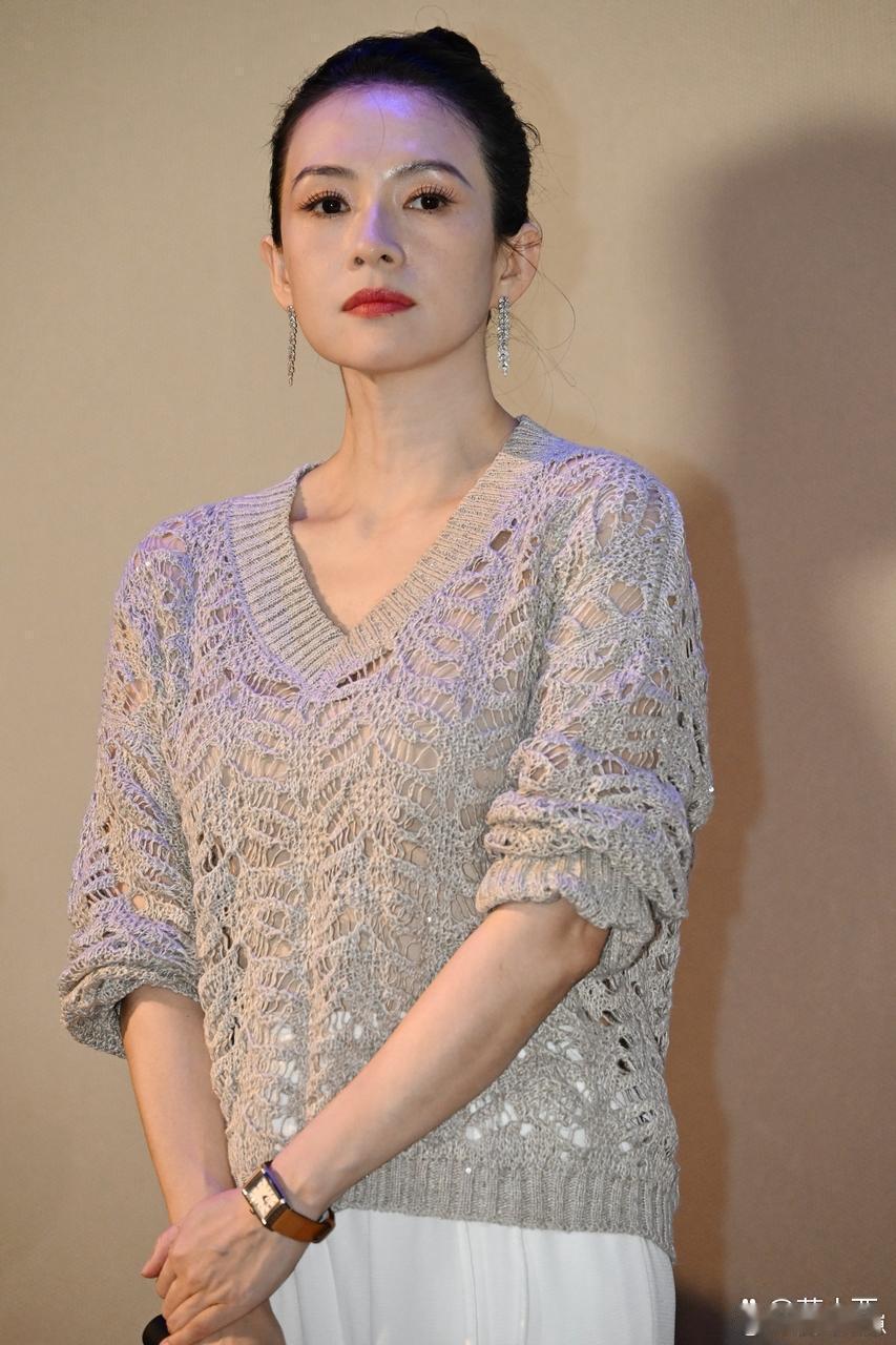 46岁章子怡增肥后颜值升级更惊艳,镂空针织衫配白裤贵气拉满,反差感十足险些认不出