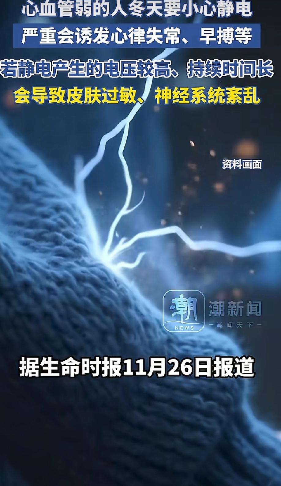 “进入冬天了,家里有有老人的,一定要注意这个问题,不然对身体会有大麻烦!” 冬天一伸手碰金属,“啪”的一声被静电电得一哆嗦,是不是大家都经历过?可别觉得这是小事,心血管弱的人要是不注意,麻烦可就大了。 李阿姨就遇到过这糟心事儿,前几天她穿羊毛衫开家门,手刚碰到门锁,一阵麻疼传来,紧接着就心慌得厉害,脸也有点发白。 她本身有冠心病,家人赶紧把她送医院。医生检查后说,这很可能是静电诱发了心脏不适,再严重点,心律失常、早搏都可能找上门。就因为一个静电,差点闹出大动静,多吓人啊! 咱们年轻人被电一下,顶多疼一下就过去了,可心血管弱的人,像老人、有心脏病的,长期接触静电,轻的会胸闷头晕、焦躁不安,严重的话还可能诱发心律失常、早搏。 更让人头疼的是,要是静电电压高、持续时间长,还会导致皮肤过敏、神经系统紊乱,它吸附的灰尘、细菌也会增加呼吸道感染风险,想想都让人后怕! 那怎样才能远离这些风险呢?专家给了几个很实用的方法。家里摆个加湿器,把湿度调到50%左右,空气不干燥了,静电自然少;碰金属前先摸下墙,把静电放掉;衣服优先选纯棉的,别穿那些化纤面料的;勤涂身体乳,让皮肤润润的;穿脱衣服时动作放缓点;必要时用点抗静电产品。这些法子简单又有效,大家要记住。 小小静电,看着没啥威力,对心血管弱的人来说却藏着这么多健康隐患。冬天来了,大家可得把防护当回事,别等真出了问题才追悔莫及。你冬天被静电困扰过吗?现在知道该怎样保护自己了吧? 冬季静电 手静电 防静电小常识 老人安全常识