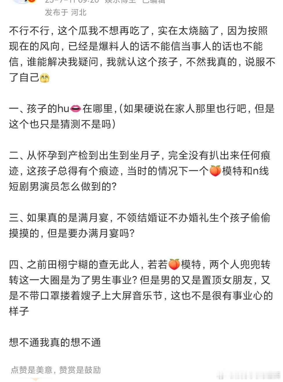 摸鱼频道 田栩宁 摸鱼频道在说什么 他不是说他从不瞎说吗?那怎么这位博主还说过若若没孩子,可是事实现在大家都知道了若若她有孩啊~