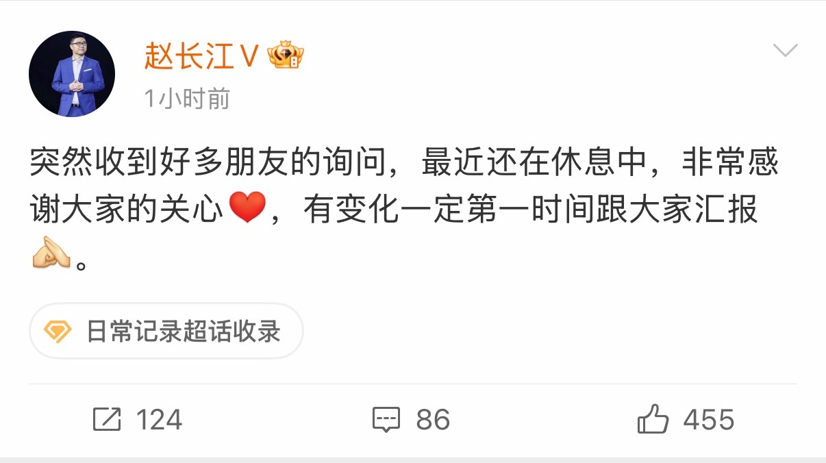 赵长江回应入职传闻赵长江离职后的动向,一直备受关注,此前就爆出可能会去智界,今天再次被爆加入智界担任营销总经理。不过,长江总第一时间回复:还在休息中!真能沉住气啊,网友都急死了