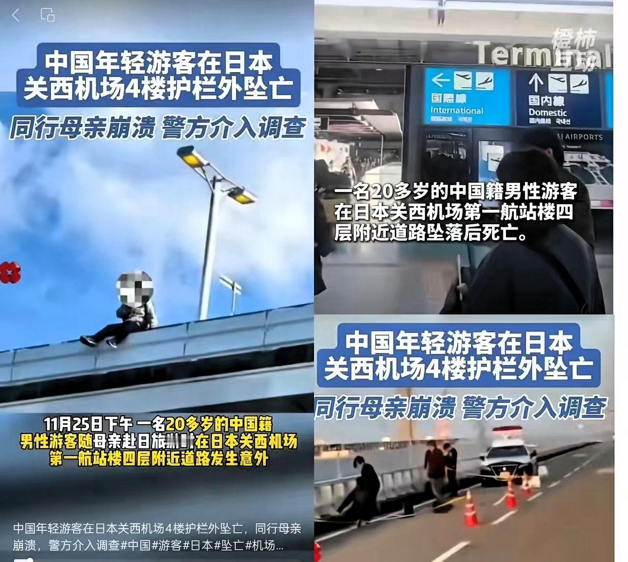 日本机场坠亡男子的母亲估计现在肠子都悔青了! 她怎么也没想到儿子一场日本之行,竟然成了永别,那位母亲的悔恨,谁能共情啊?这哪是跨国旅游,分明是一场让家庭破碎的悲剧! 国家早早就连发赴日安全预警,反复提醒当地治安不靖、风险上升,可总有人把官方的善意提醒当“耳旁风”。 有些人总觉得“倒霉事不会轮到我自己”,被低价机票勾了魂,把安全全部抛在了脑后,殊不知旅行的底线从来都是大家能“平安归来”。 官方的预警从来不是危言耸听,而是用无数经验教训攒下的保命提示。 这世上最没用的就是“如果当初”,要是多听一句国家的提醒,要是没抱着侥幸心理出发,或许就不会有白发人送黑发人的痛。 对外出行,听国家的话从来不是束缚,而是最实在的保护。旅游坠楼