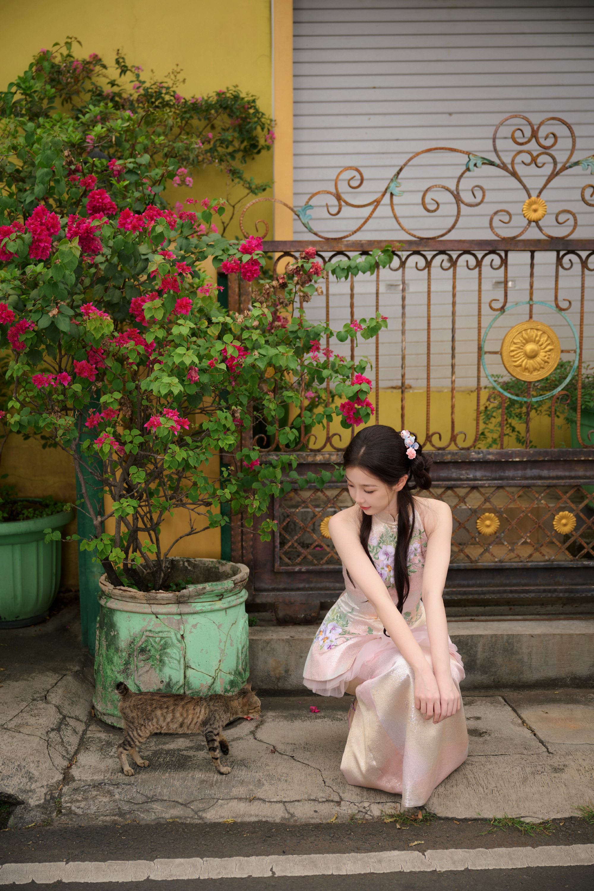 虞书欣今日活动出图头上戴的石榴花嘴里喝的石榴汁