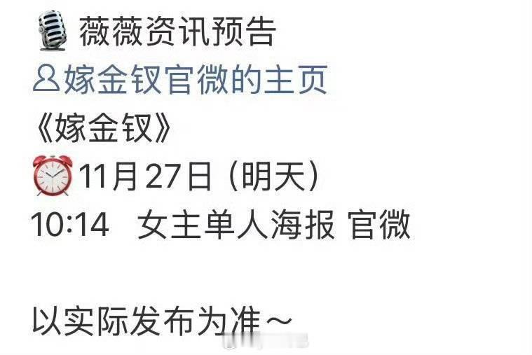 田曦薇《嫁金钗》明天官宣,只宣女主?