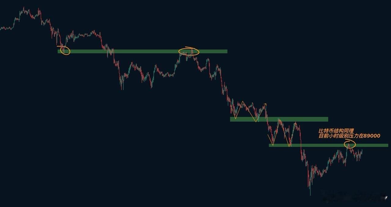 BTC 多次上探88000一線未能形成強勢有效突破,說明上方拋壓重較重,動能不足
