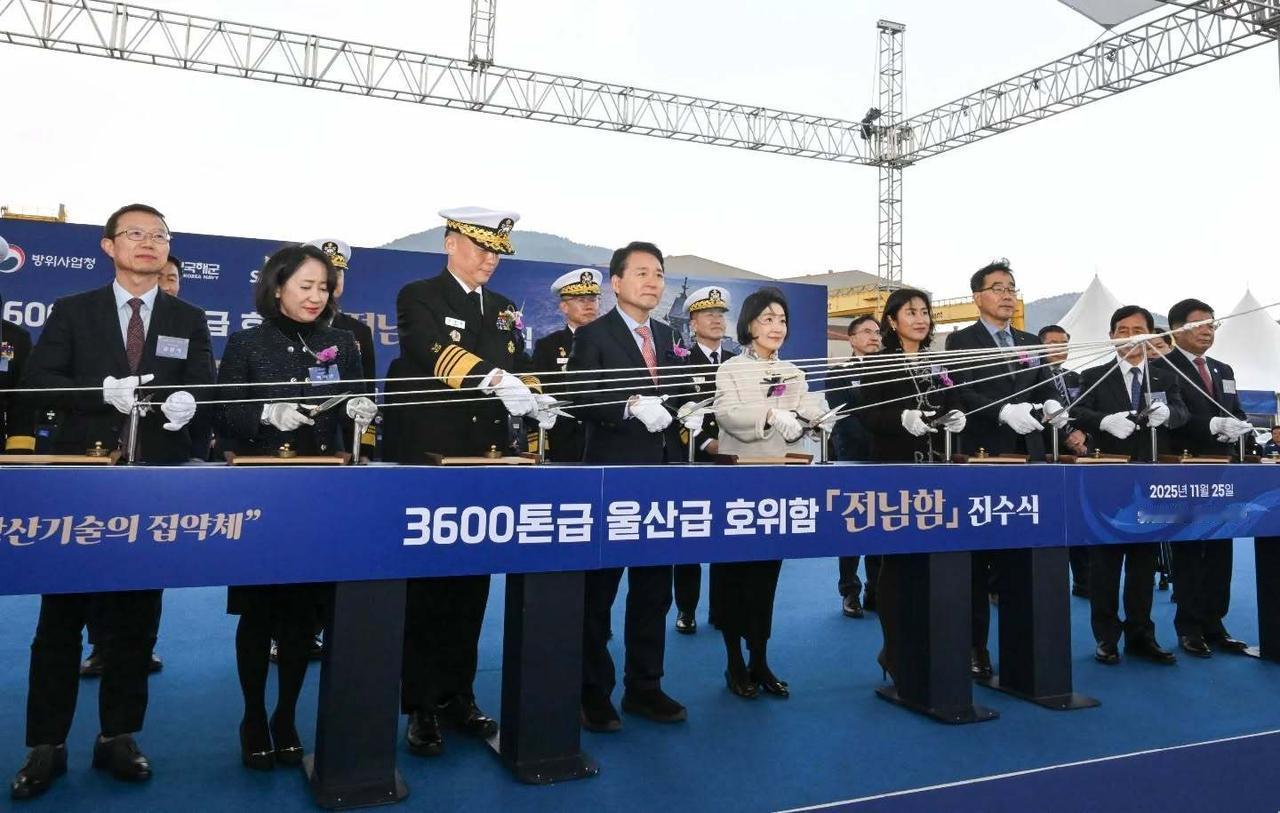 11月25日韩国海军“忠南级”护卫舰“全南”号(FFG-831)在庆尚南道高城郡的SK海洋造船厂下水。“全南”号将在经过测试和评估后于2026年12月交付海军,之后将进行动力升级改造,最终投入作战部署。