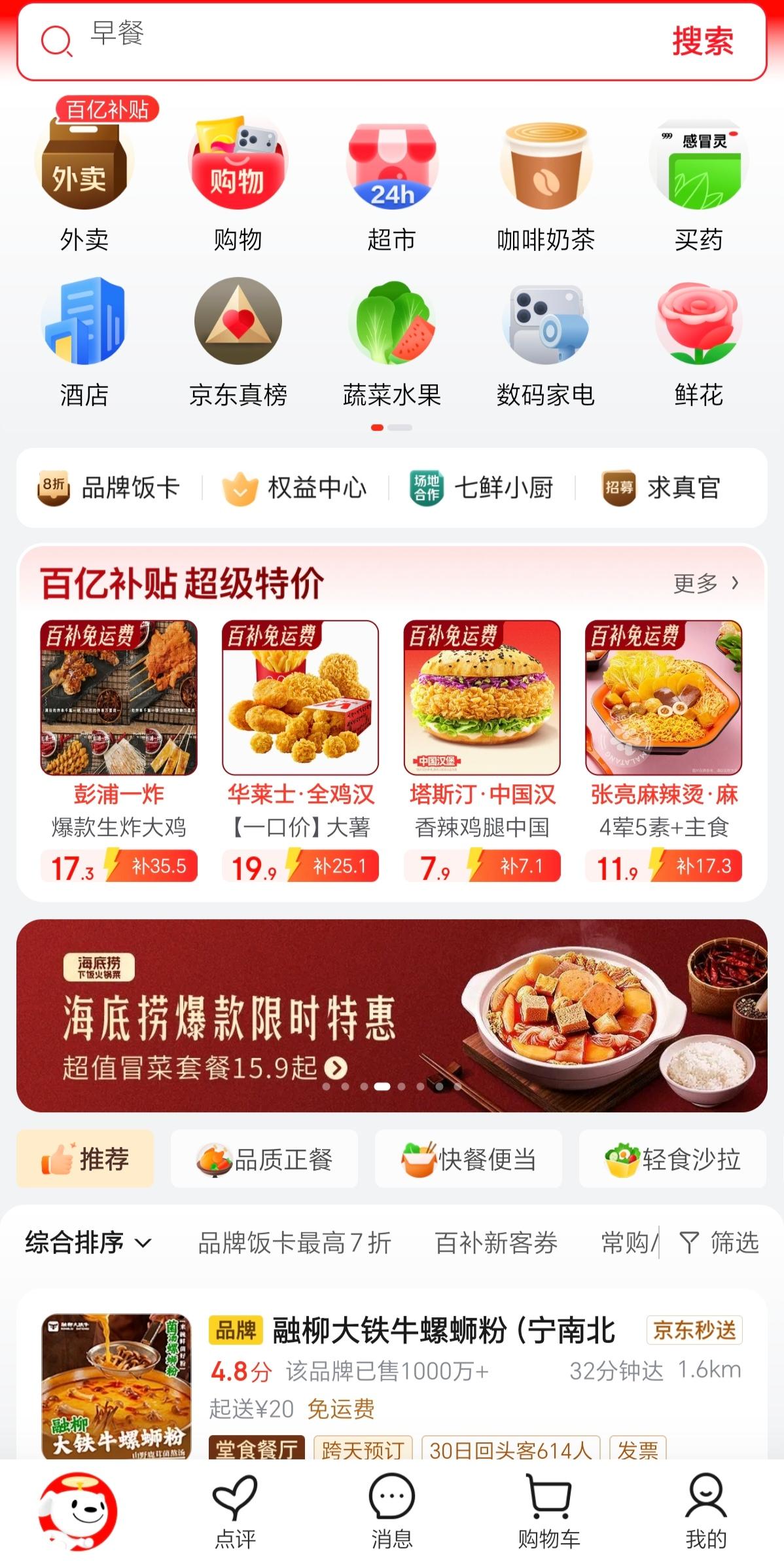 更新应用的时候,无意间看到京东外卖app也上线了!这个是单独的app,除了外卖之外,还有一个京东点评挺有意思的,类似于“种草”。可以在点评上分享消费体验等,方便给其他用户提供参考。 另外超市、买药、蔬菜水果、数码家电等及时零售端口,以及酒店、旅游、家政等场景应用,也是同步置入外卖app的。这也说明京东外卖app,是在打造及时零售与生活板块协同的应用场景。 目前外卖的三驾马车,在市场上的竞争,已经趋于稳定。都拥有了各自的市场份额和忠实客户。但随着京东外卖app的上线,在外卖和及时零售这个存量市场上,可能还会有充分的竞争。