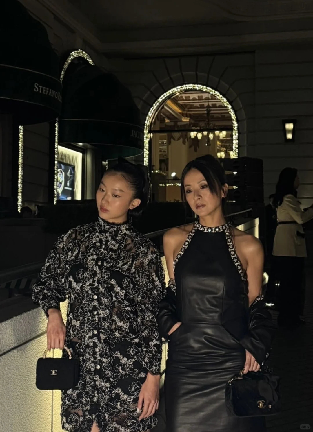 陈康堤和妈妈徐濠萦,一起出席香港半岛酒店的圣诞灯饰活动