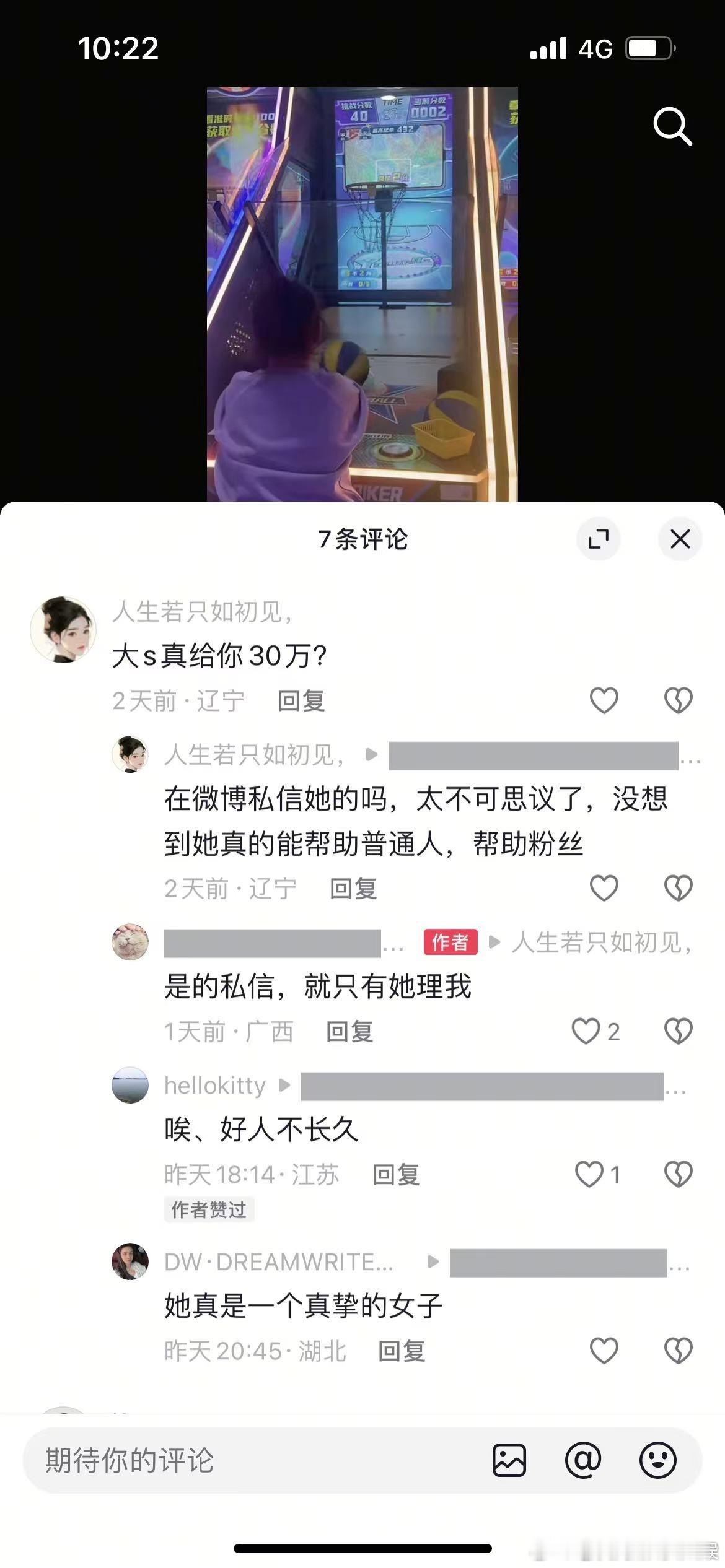 大S私信给白血病女孩妈妈三十万有网友透露大S曾回复自己的私信给了30万,治疗患
