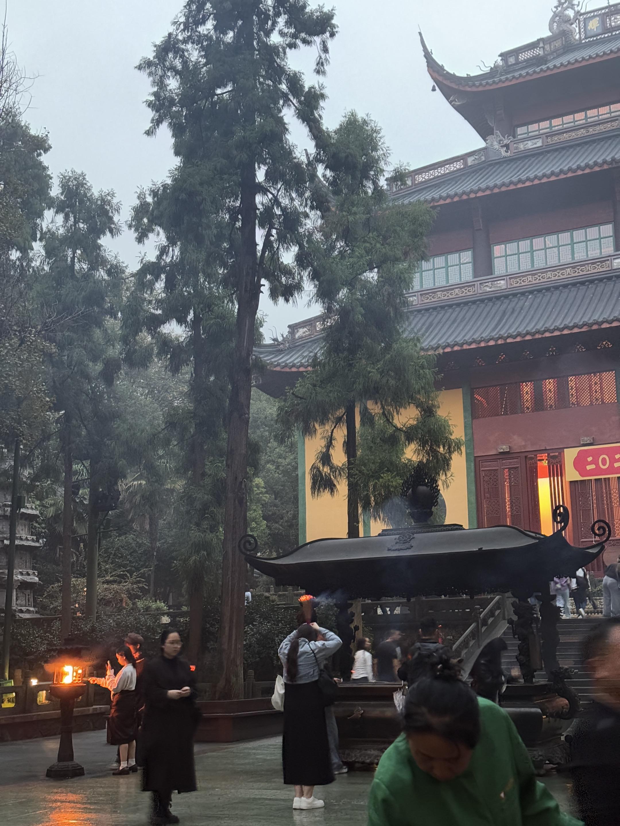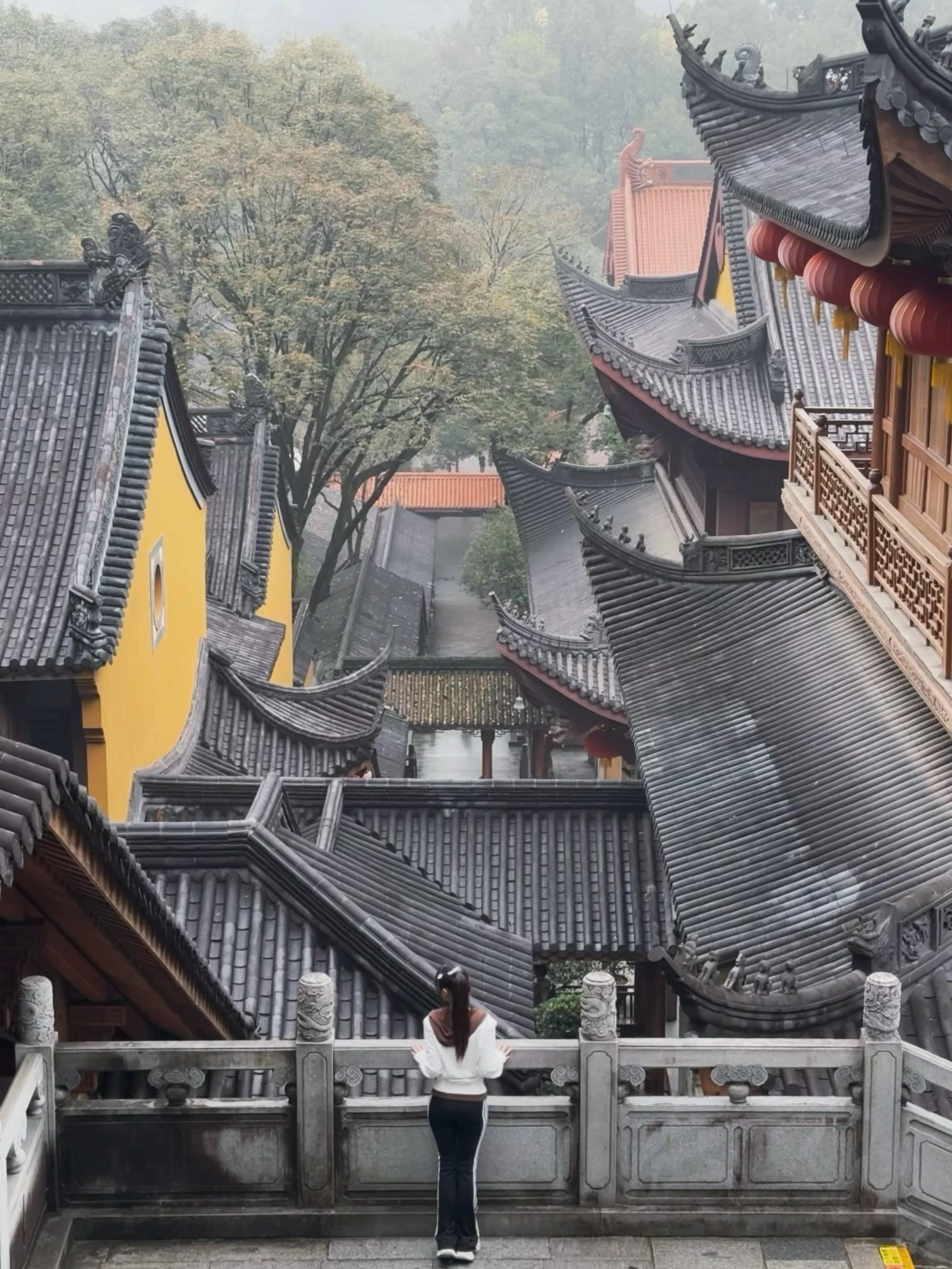 只记得那天去寺庙的路上,淅淅沥沥的小雨,来到雨下的寺庙,都说灵隐的雨,落下都是禅意,整个世界变得异常安静,湿润的空气,飘逸的青雾,裹挟着缠绕的古木丛林,听雨僧庐下,鬓未星星,却已然有了青灯古佛的心境,雨中、静寂、洗尘、纳福,一切如愿。