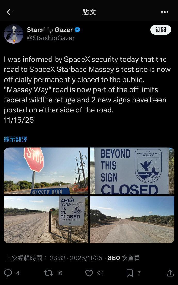 发射还是环保?【航天 SpaceX 安全部门将 SpaceX Starbase Massey 测试场的道路现正式永久不对公众开放(封闭)】(来源:见附图4)“梅西路”道路现已成为禁区!联邦野生动物保护区和 2 个新标志已张贴在道路两侧。