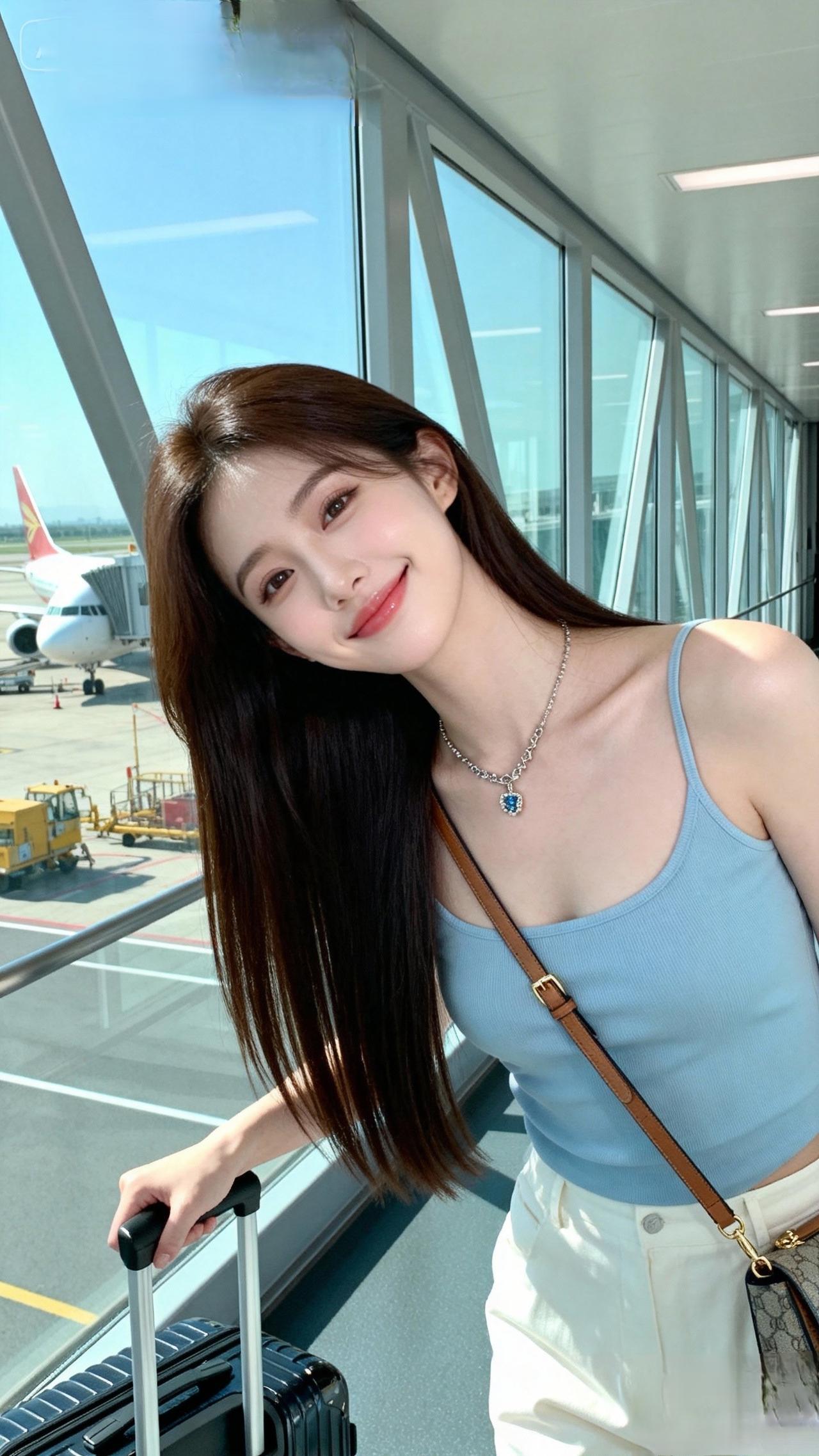 夏日清新穿搭,牛仔短裤+米色背心,搭配棕色靴子,轻松自然,享受户外时光!🌞💙