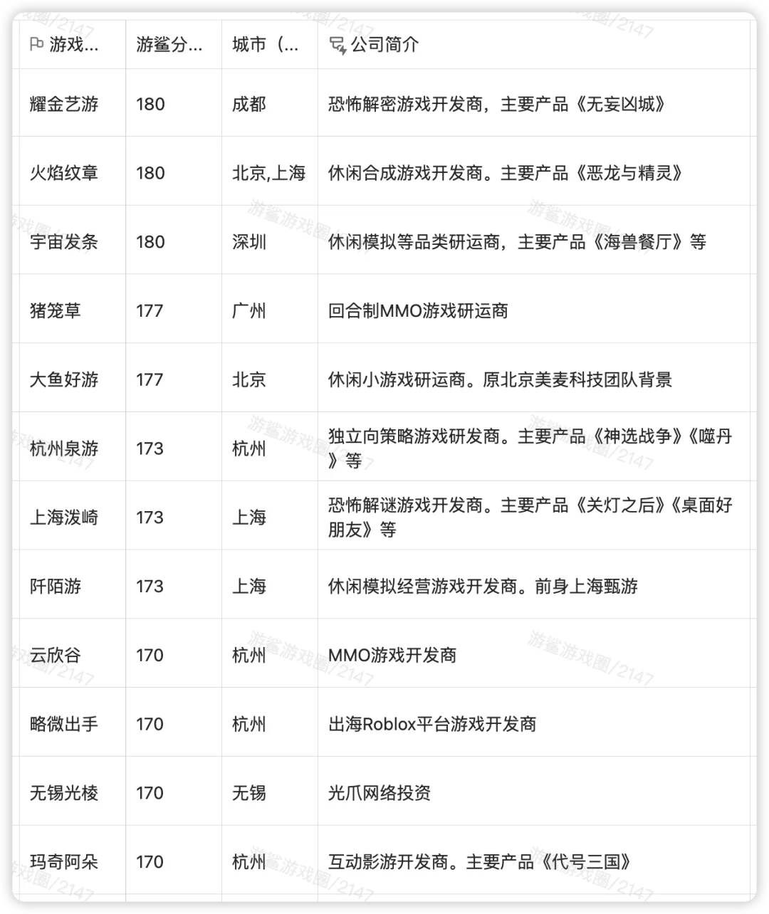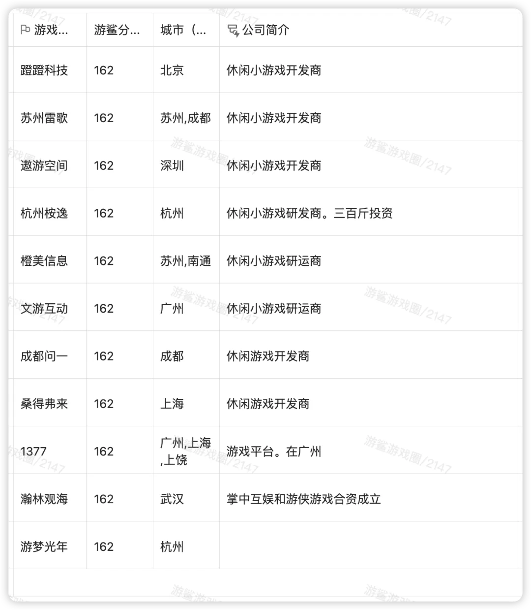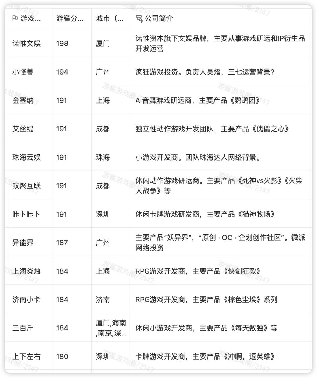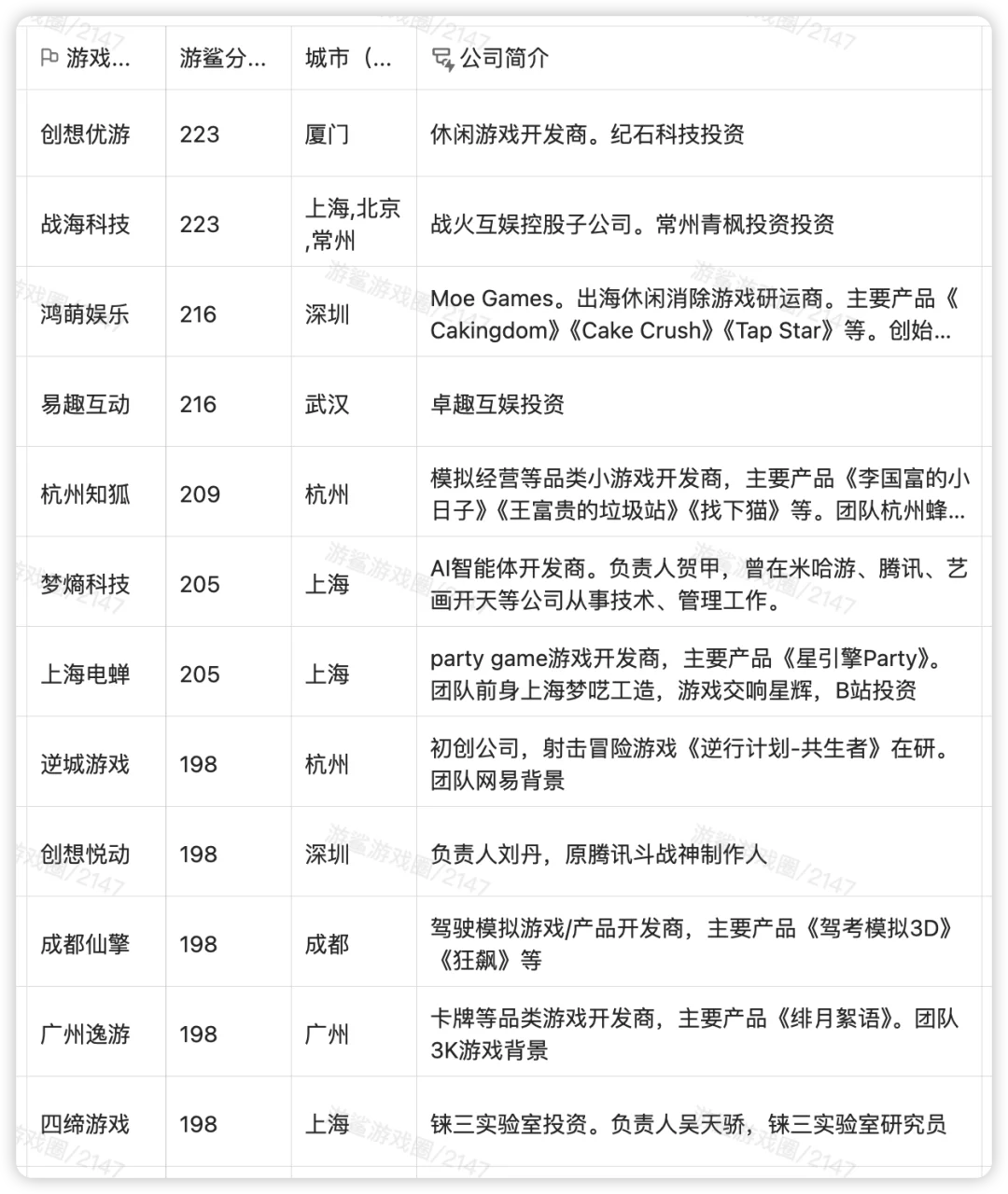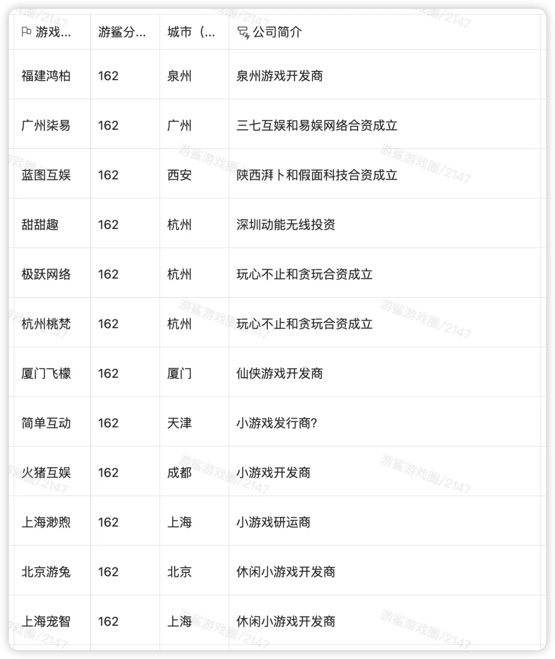 游鲨文档新收录公司83家游戏公司、400+主体。