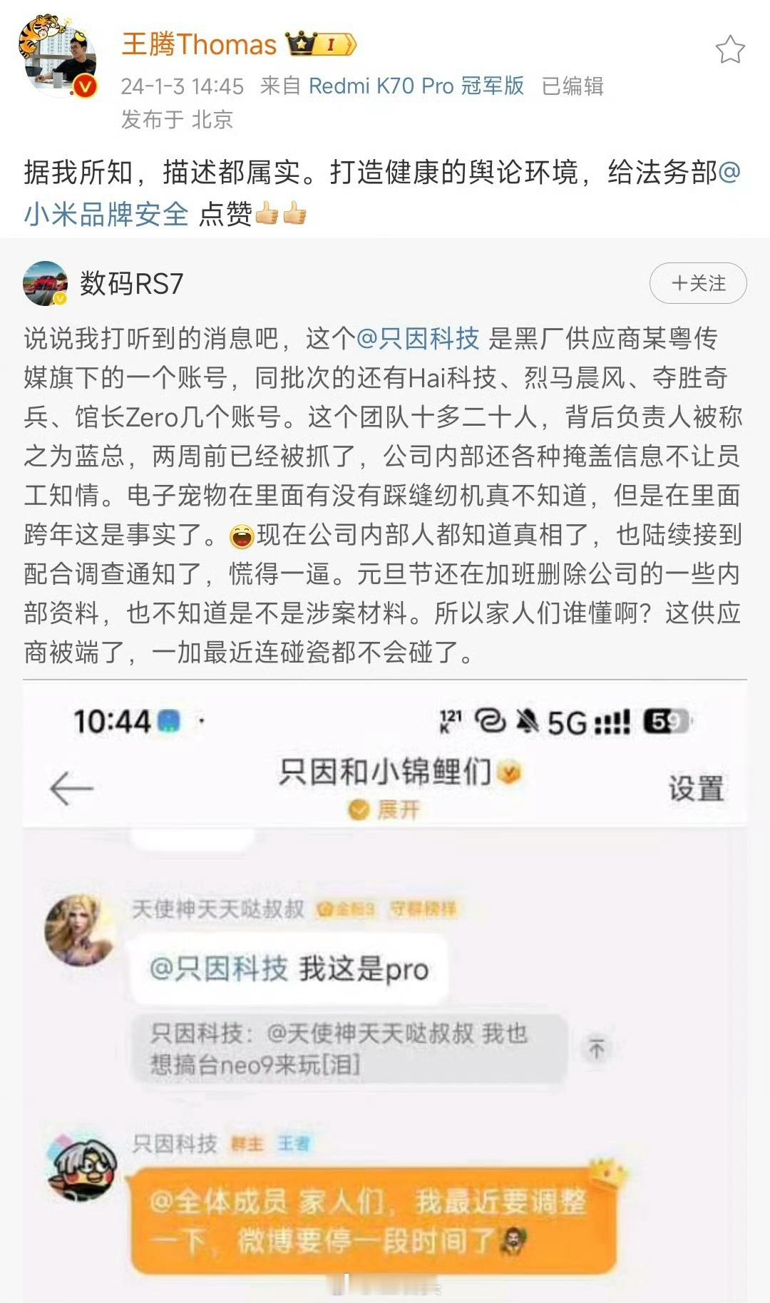 经常被熊老师冲过来,熊老师最喜欢说的就是米粉被抓。但我翻来翻去,也就发现前段时间禁言了几个KML,而且都是3个月就解禁,跟熊老师被禁没区别。熊老师说被抓,我倒是想起了熊老师的哥们儿团队,只因科技和最近炸号的烈马晨风。再加上已经闭嘴的老猫、蒜苗,这么看来,熊老师的哥们儿可就没几个了。而且要论黑历史,熊老师的哥们儿落网的可真不少。法网恢恢,疏而不漏。年轻人可千万要擦亮眼睛,别被熊老师坑了,小则炸号,大则缝纫。