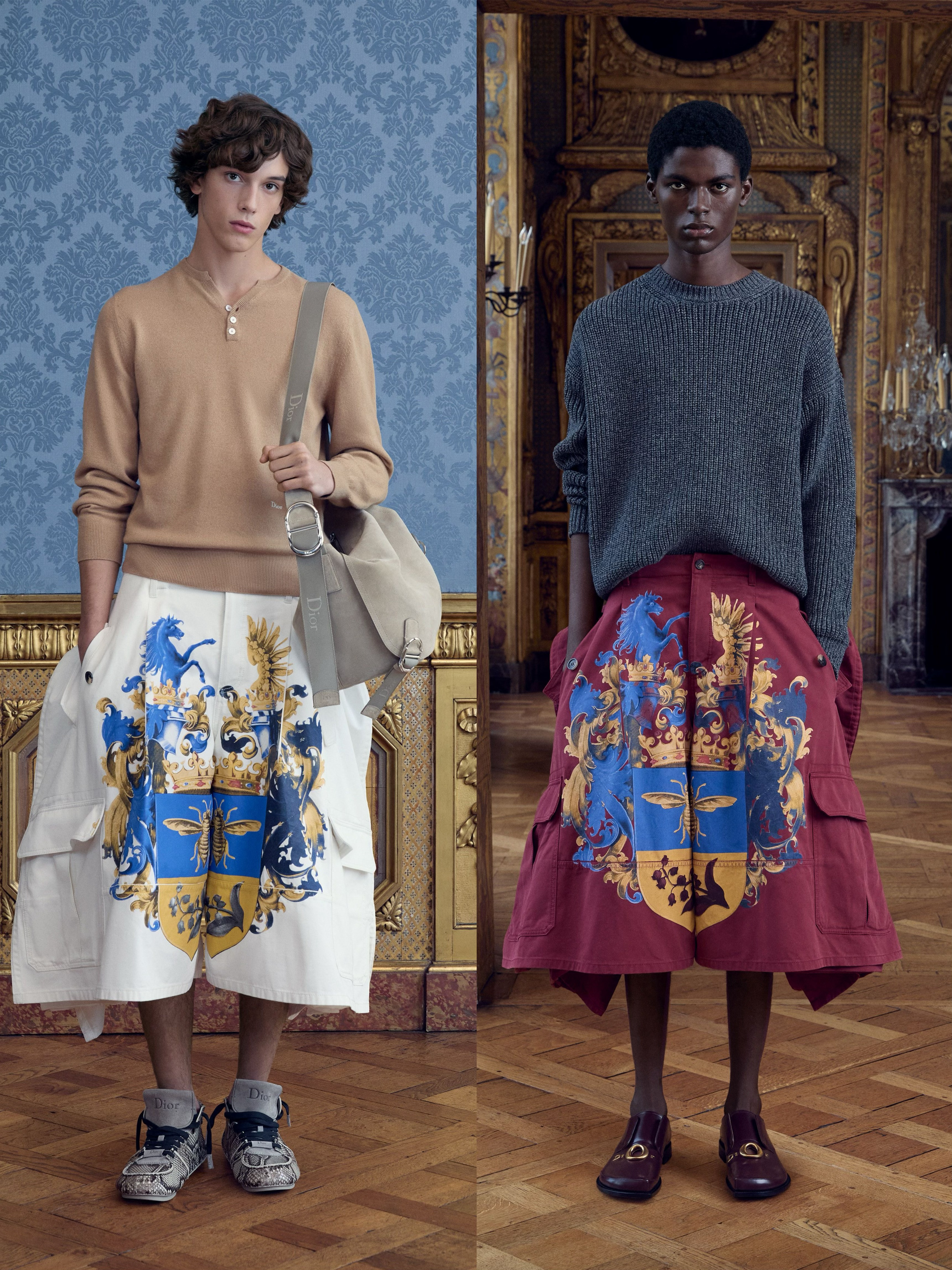 Dior 2026早秋男装系列发布———“这是一个延续,是一种展开,是不断叠加的引用。”Jonathan Anderson说。华丽刺绣的礼服大衣、宽得近乎与裙子无异的Delft工装短裤,以及粗花呢 Bar 外套,在他入主仅六个月后,已经成为其风格的标志性基石。灰法兰绒裤、红色卡其裤、法式衬衫、休闲雅致的 Harrington 夹克、橄榄球条纹毛衣,以及一套窄版蓝色天鹅绒晚礼服,“Delft”蓬松的工装短裤被点缀了玫瑰花蕾的印花布、盾徽印花。“哪怕某件东西看起来非常普通,即便是一件针织衫,我也努力确保要在世界上最好的地方生产。聚焦于这种品质,去打造一个经得起时间的衣橱。”Jonathan Anderson说。时尚灵感解读米拉服饰解析
