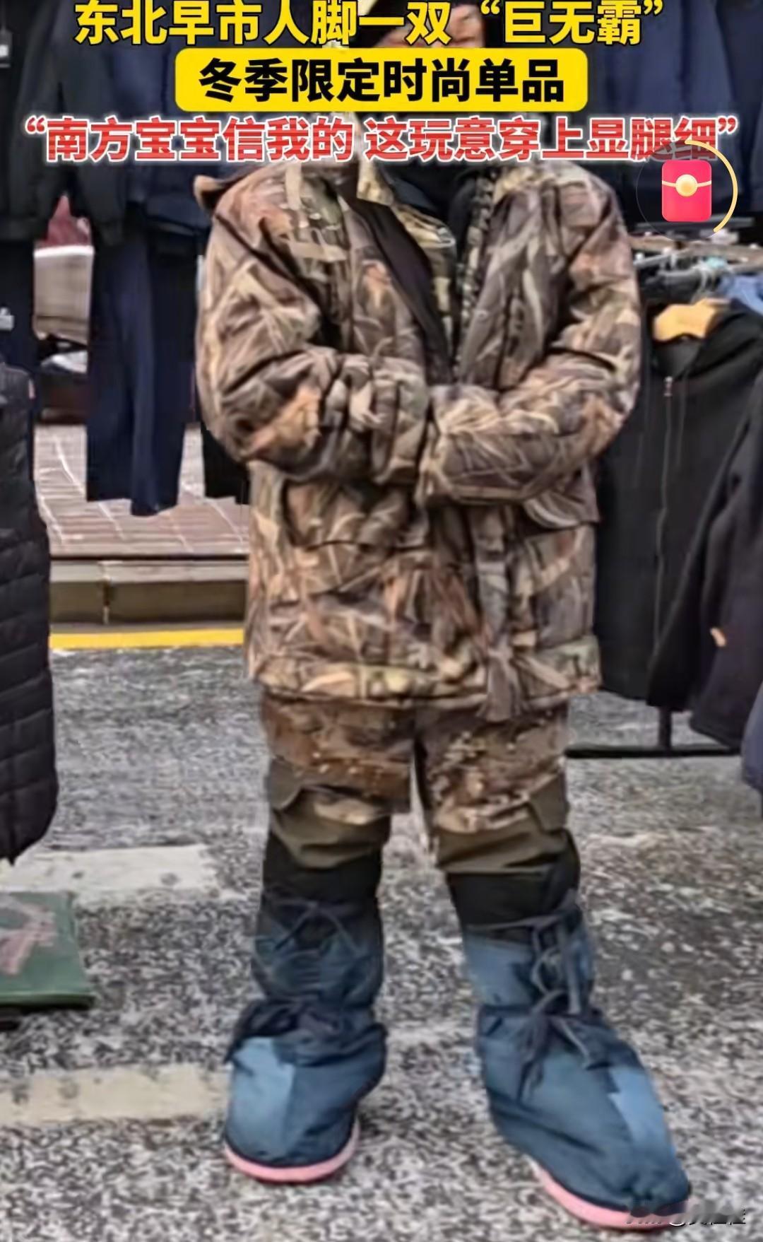 你看这鞋型,裹得严严实实但胜在抗冻啊!管你零下三十度,脚脖子都暖得能孵小鸡。南方朋友别瞅着笨重,在东北,“穿得像熊”是对冬天最基本的尊重——腿细有啥用?冻得嘶哈的,不如咱这双“暖脚神器”走得踏实!