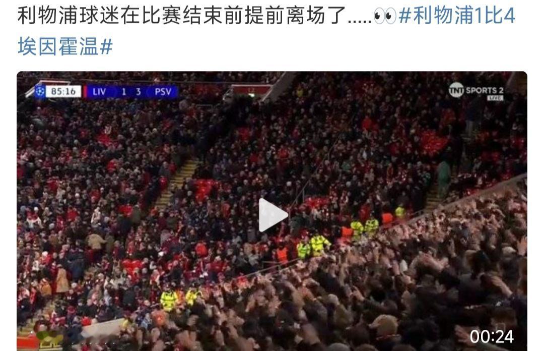 利物浦球迷在本赛季,已经好几次提前离场了。 平时英超最洪亮歌声的球场,球迷也有受不了的时候。 怎么办呢,作为球迷最近一段时间少看点球,等过段时间好些再回来吧。 这种情况皇马那边也体会到了,现在是阿森纳时代,英超大结局,欧冠也快了。[可怜]