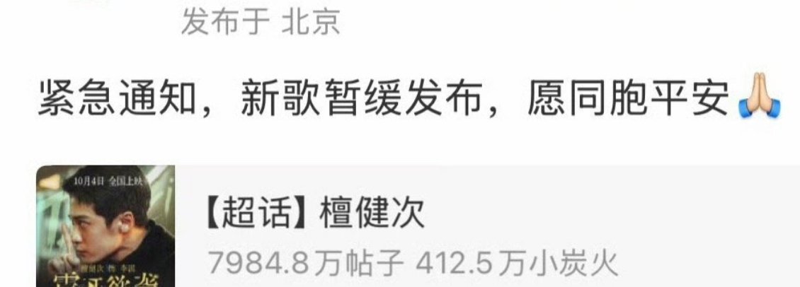 檀健次新歌暂缓发布,愿同胞平安檀健次新歌暂缓发布