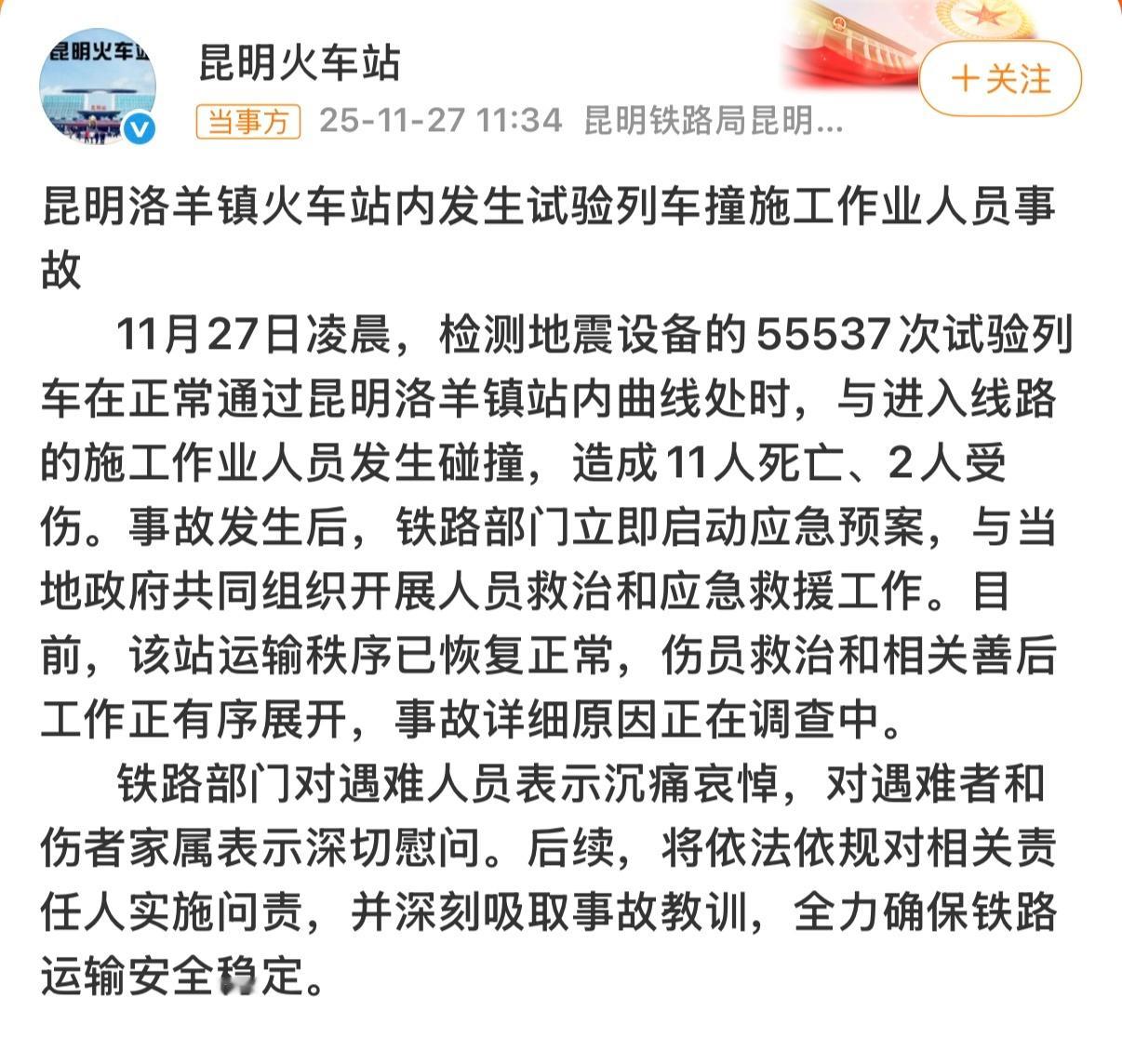 这两天咋回事明明可以避免的,太离谱了…昆明一火车站试验列车撞人致11死
