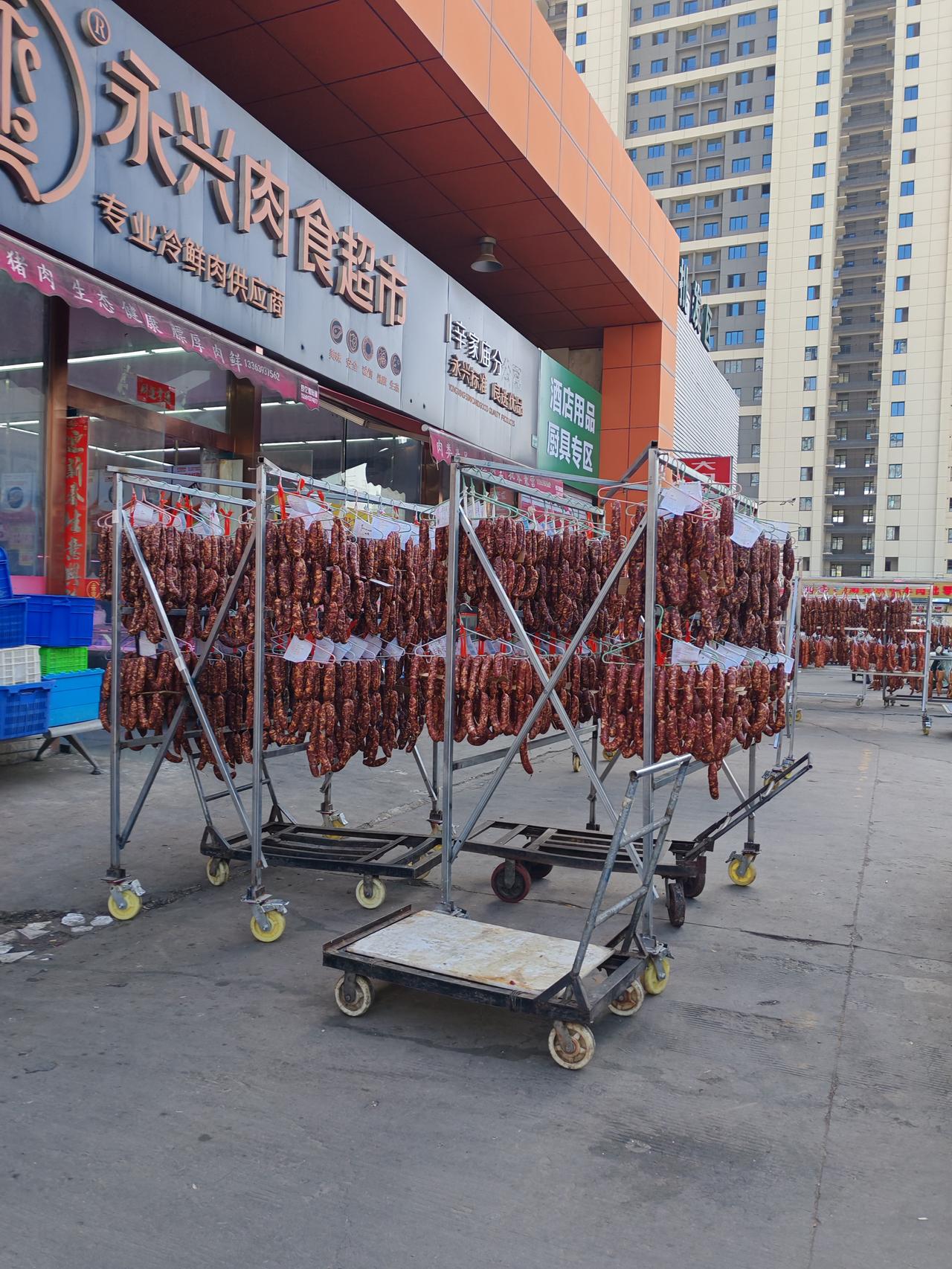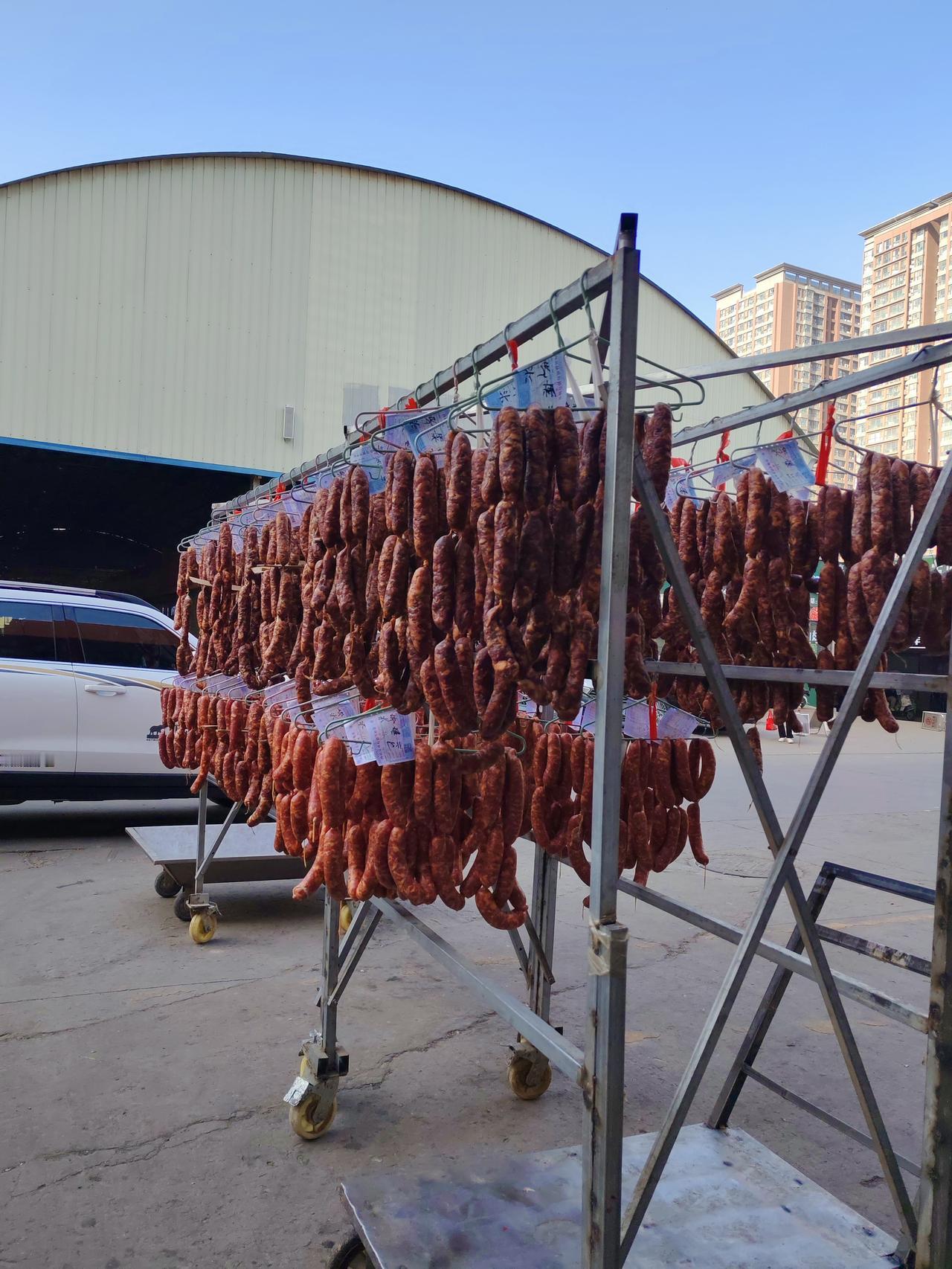这里零售并不便宜 11月27日,陕西西安。午饭这会儿,我来到了位于北郊的西北农副产品批发市场溜达一圈。 这个市场面积不小,分为几个区域,有水果干果区、蛋禽区、牛羊肉区、猪肉区、蔬菜区、粮油调味品,好像还有日用品批发区。 转完一圈,给我的总体印象水果价比较温和,但鸡蛋蔬菜和猪肉并不便宜,比如鸡蛋(图2)一盘13元,16元,19元,西红柿四元到六元,猪肉12~16价格不等,排骨普遍17元或18元。 猪肉区开始加工香肠了,基本每家店外的架子上都挂满了腊肠,我打听了六家店,价格普通为13元,有一家14元,但也有一家11元,每家都包工包料,要求罐装香肠10斤起步,客户自己选肉,前腿后腿五花均可。 逛完这个批发市场,整体印象零售价并不便宜,似乎跟我家小区周围的蔬菜和肉类价格差不多。所以建议购买生活用品量较少的市民没必要舍近求远。