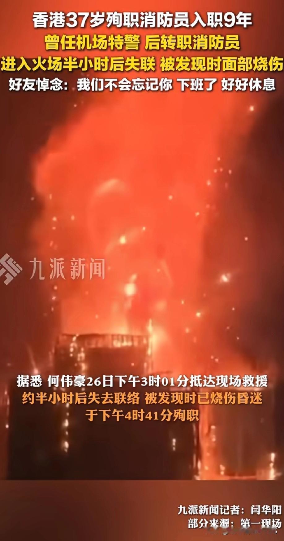 听闻香港消防员殉职的消息,我心里满是悲痛。这位年仅37岁的消防员,原本下个月就要与相恋十年的女友步入婚姻殿堂,却在火场中失联,不幸牺牲。 镜头中,他被抬上救护车时,双手已被严重烧伤。 致敬这位英雄,愿他一路走好。 让我们一起探讨:在日常生活里,我们能做些什么来减少消防隐患,守护这群可敬的逆行者呢?