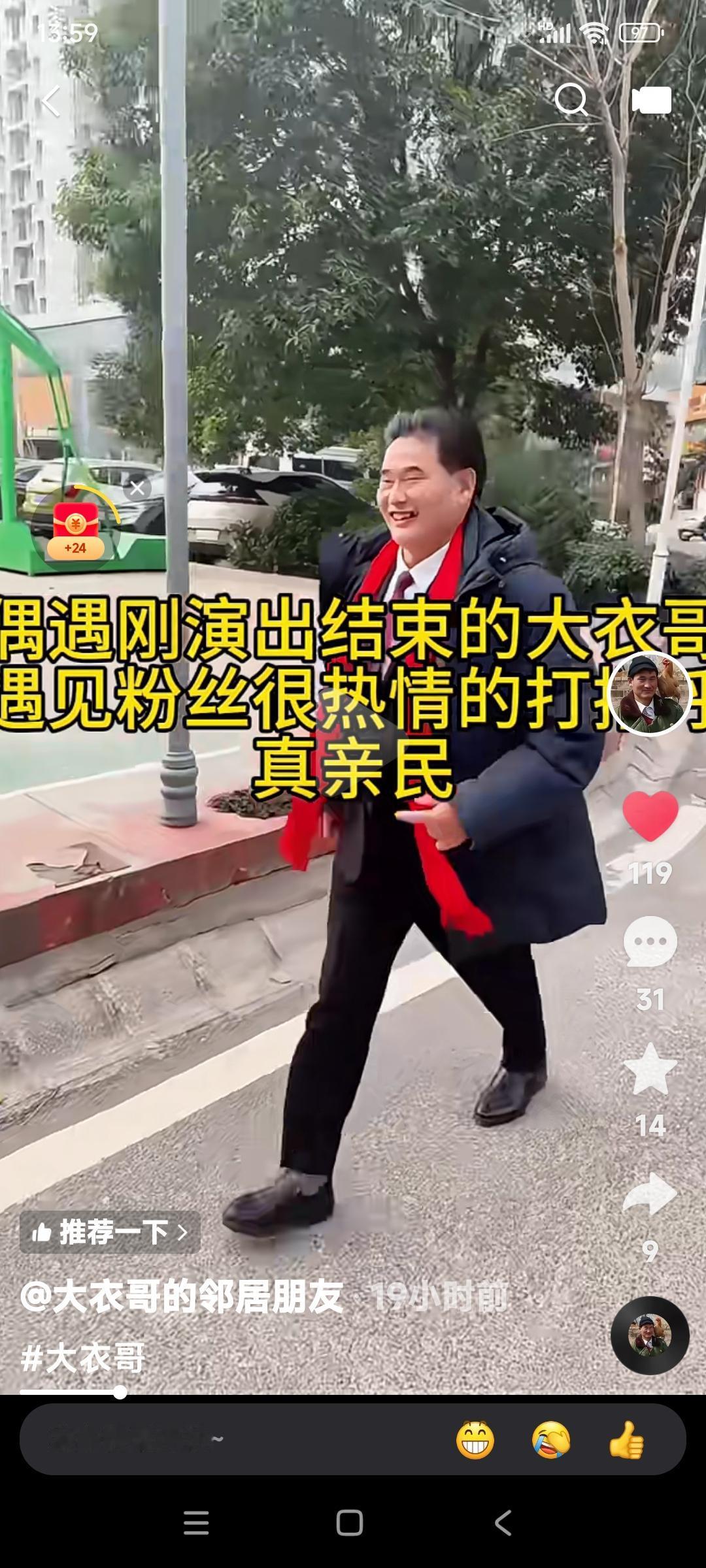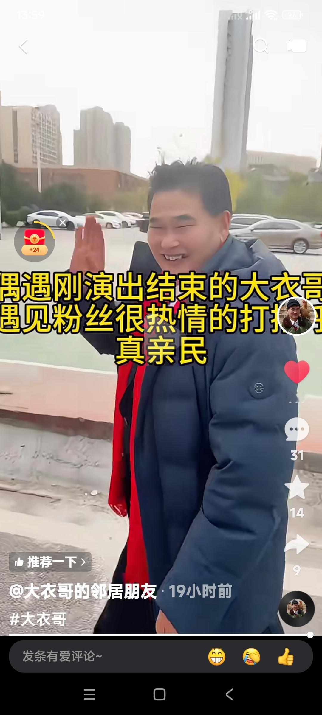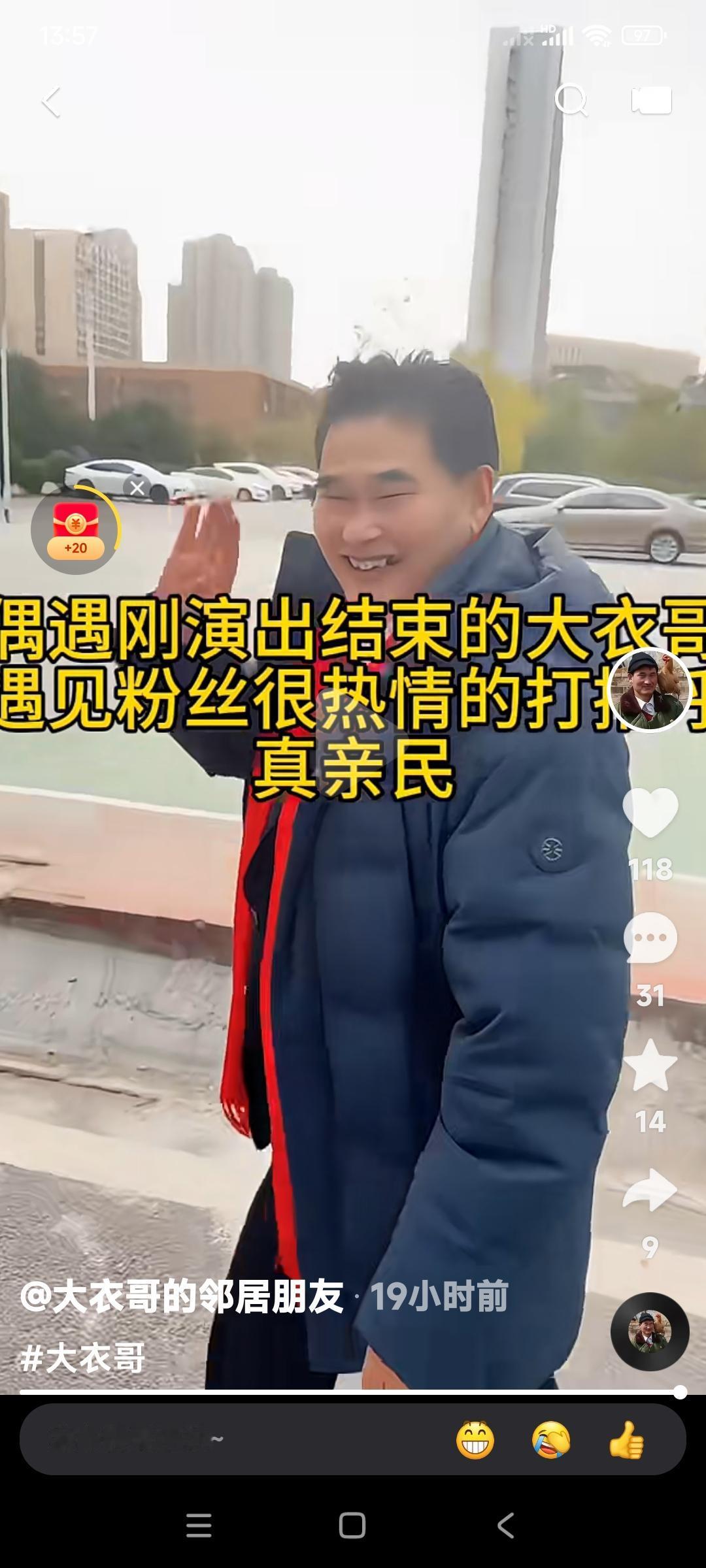 看着大衣哥朱之文迈着六亲不认的步伐走过来了。 阁演刚刚结束。出门儿遇见众多粉丝打招呼。 这个高兴劲儿,这就别提了。 出场费最少10万元到手儿了吧? 你们说能不高兴吗?