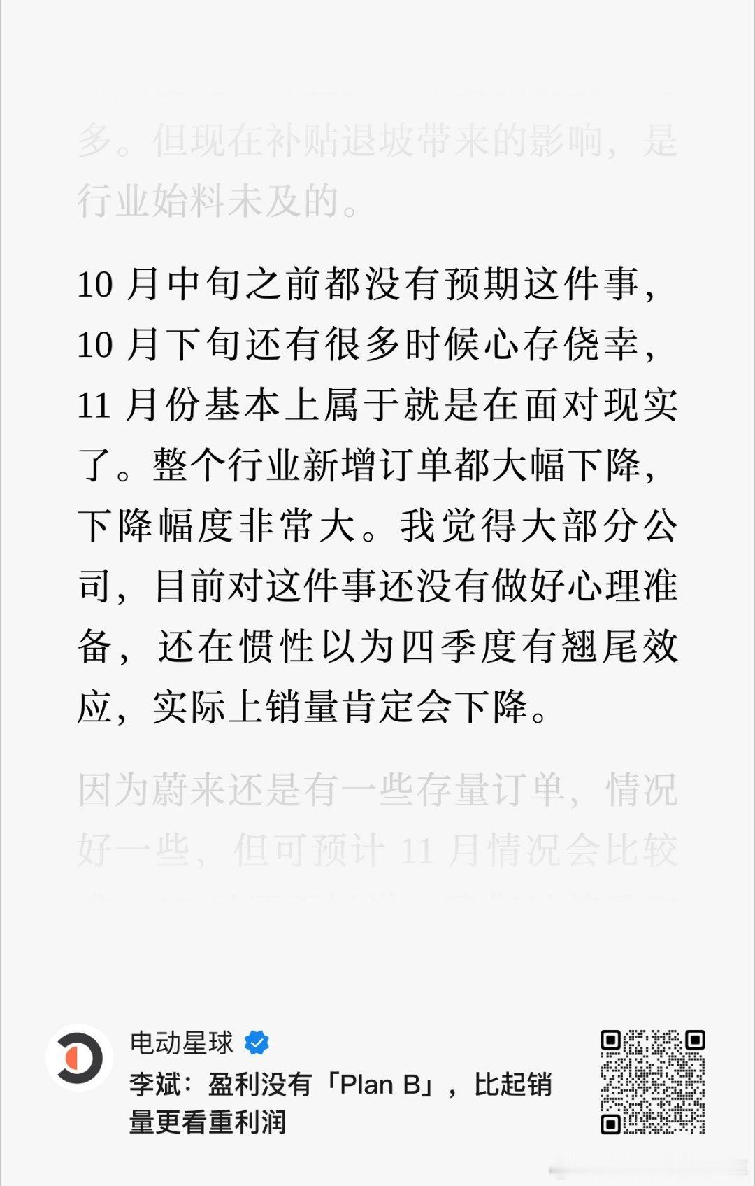 确实没想到置换补贴影响这么大,但是我感觉很多人不会算账,明确可以确定的是购置税优惠也会消失,现在虽然没有补贴,但是明年购置税要加上来了啊,一个30万的车,购置税明年也要多掏1.5万,那只能有一个可能「赌」,赌明年有置换补贴。但是无论如何,明年1月需求会修复。