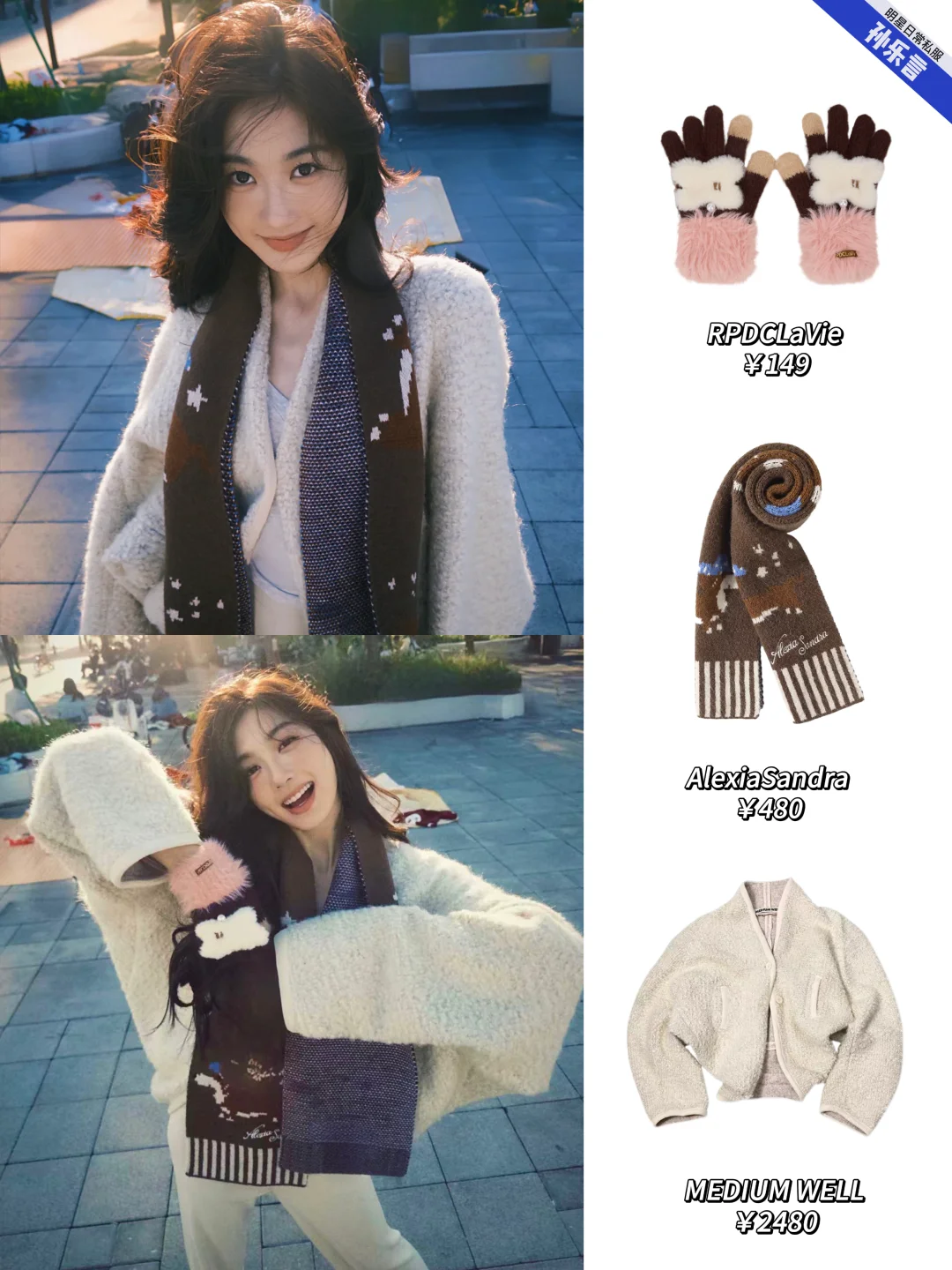 孙乐言冬日女友穿搭,手套🧤好可爱!
