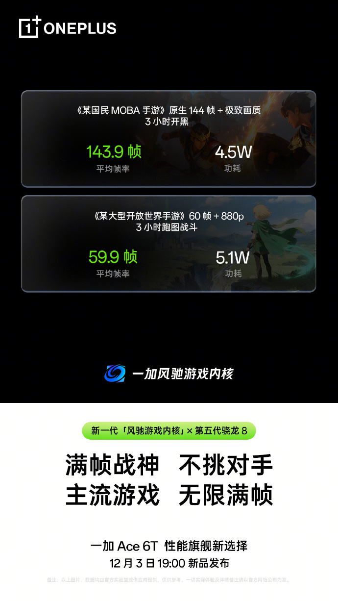 一加Ace6T升级新一代的风驰游戏内核后的游戏帧率、功耗表现