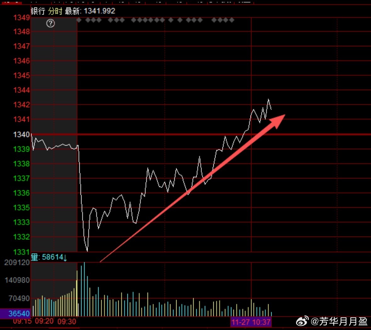 大银行早上砸了下之后,在慢慢悠悠的往上走,证券被带歪,这会把大盘也带着往上,挺住就是最好,银行别猛涨就OK!