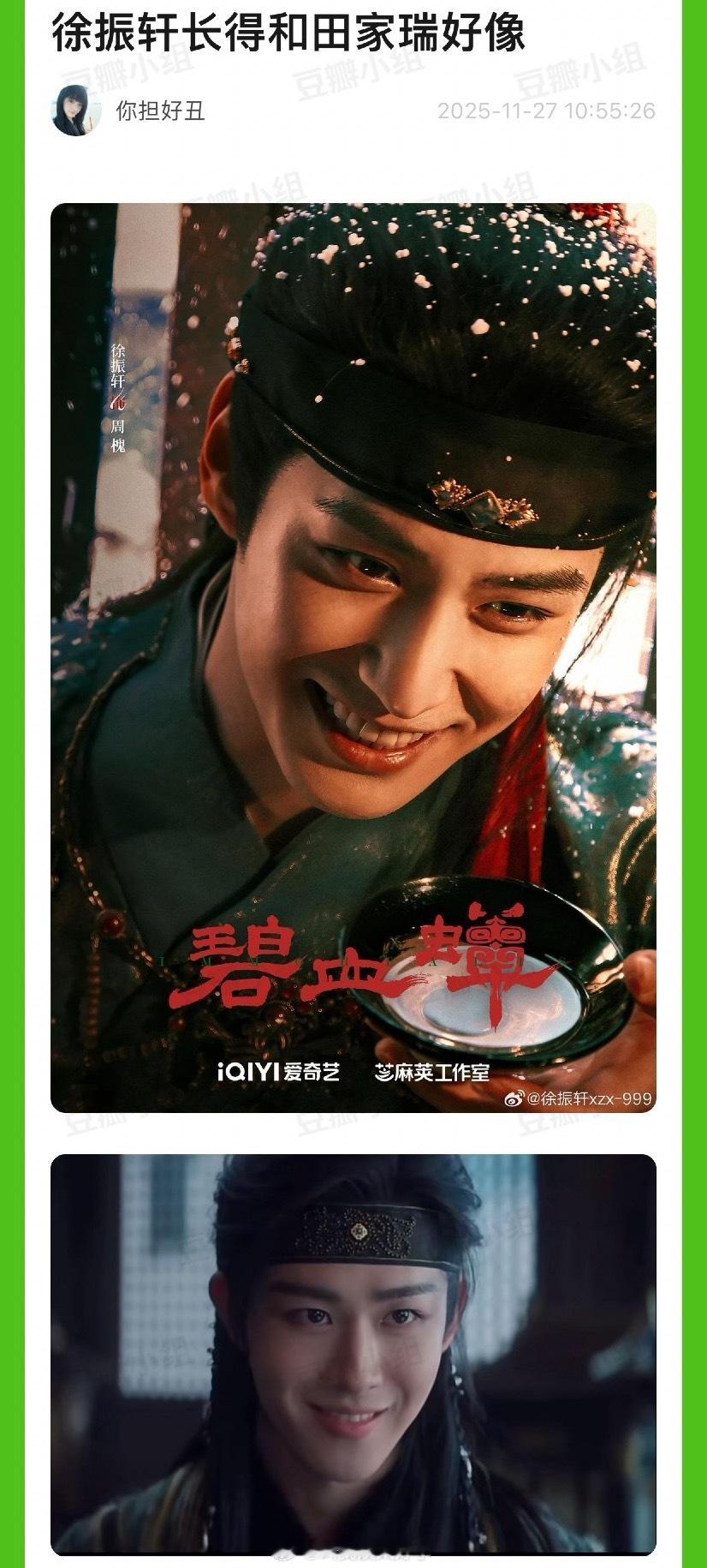 有网友说徐振轩和田家瑞长得好像,大家感觉两人相似度高吗