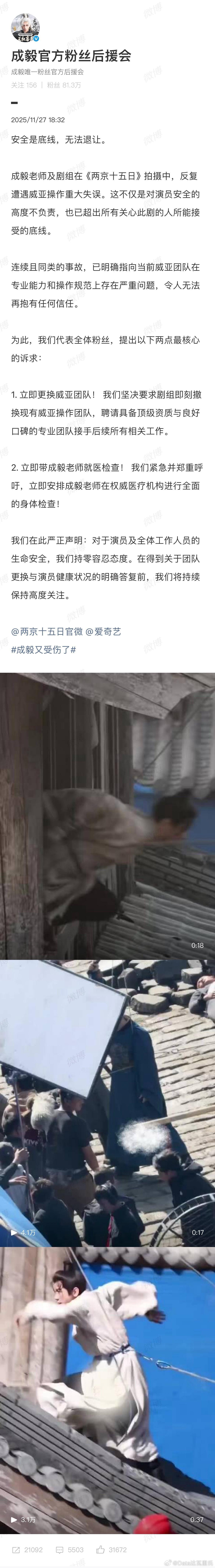 男宝妈又发力了,iejj因为成毅拍威亚戏绊了一下又出警爱奇艺了,连屠好几条陈晓