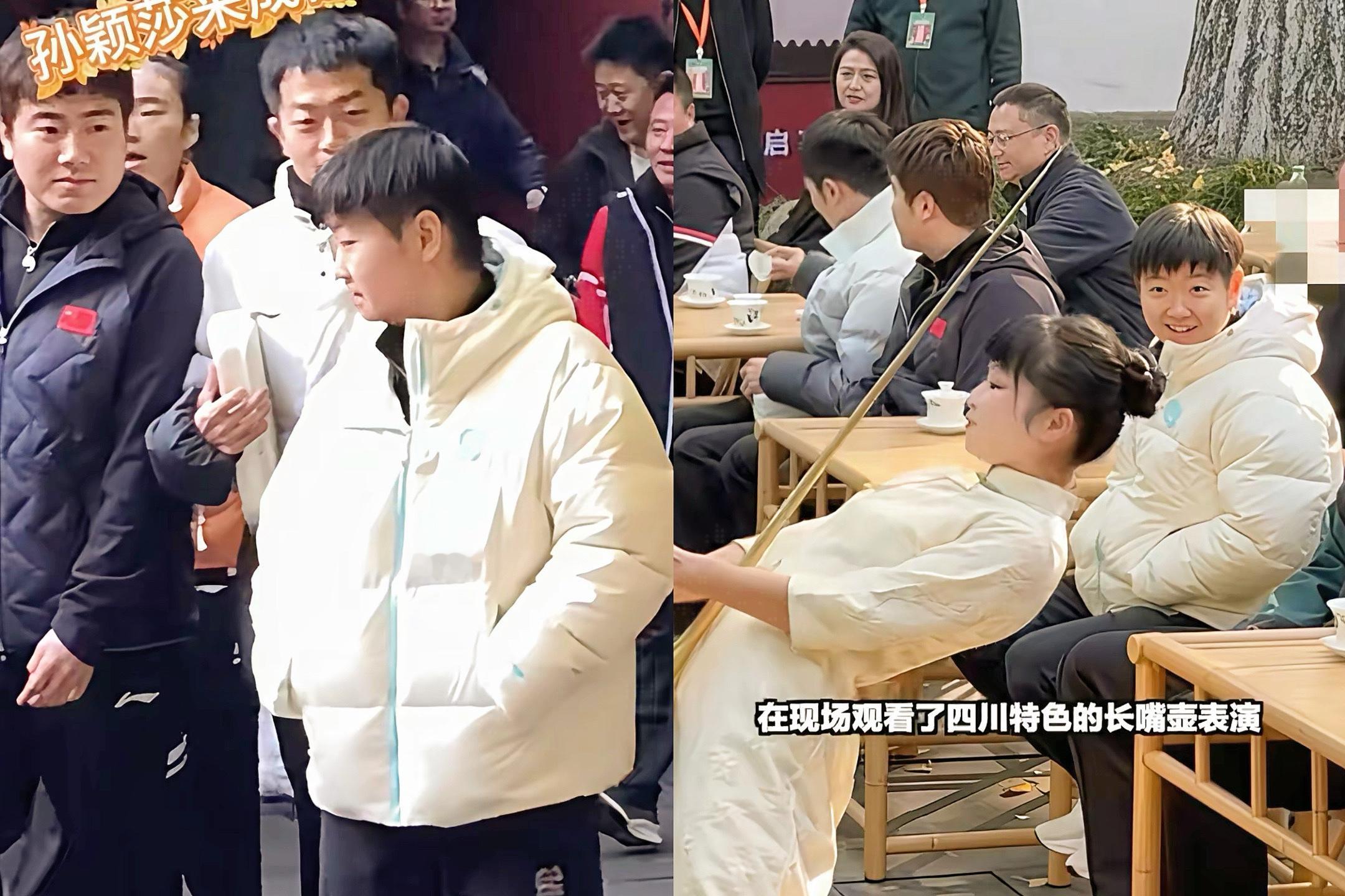 不知道大家发现没?孙颖莎的"盯人属性"又犯了!武侯祠里,长嘴壶茶艺表演的漂亮姐姐,直接让她看呆了。