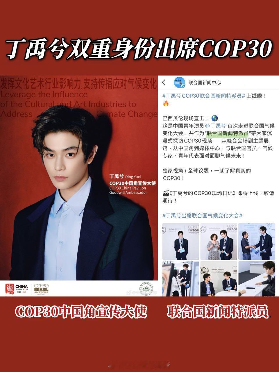 丁禹兮解锁COP30双重重磅身份!正式官宣【联合国新闻特派员】及【COP30“