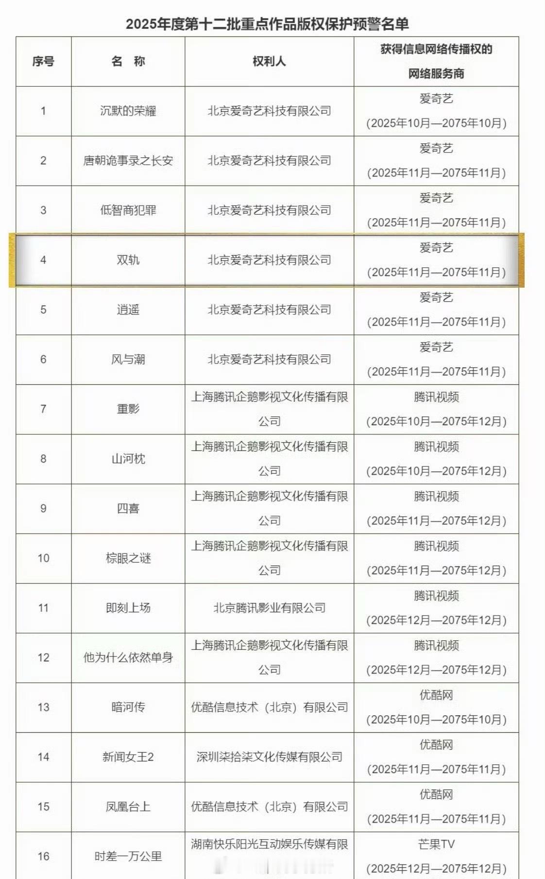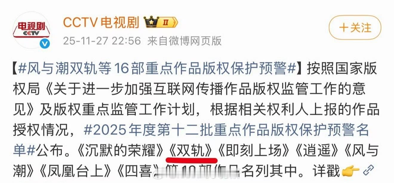 虞书欣《双轨》被央妈列入重点版权保护作品名单