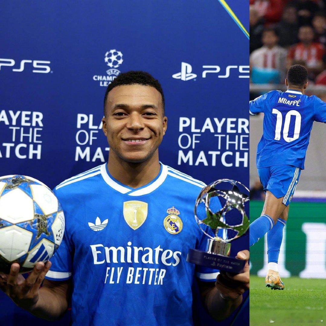 【官方】皇马前锋姆巴佩当选本周欧冠最佳球员,他在对奥林匹亚科斯的比赛中上演了大四