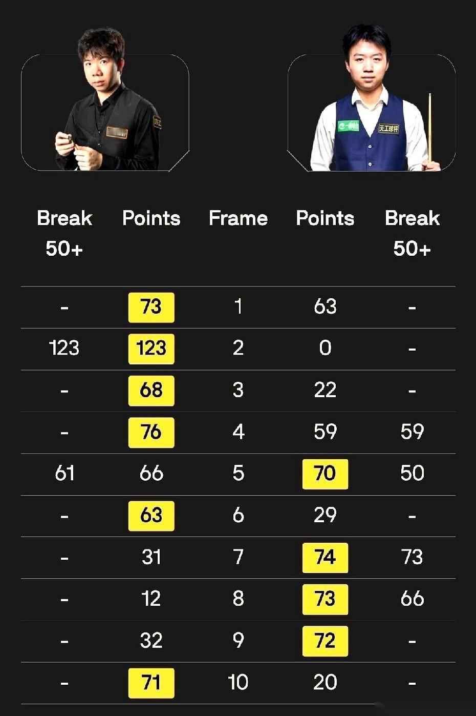 1-4落后,对手手握4个赛点,一只脚已经踏进鬼门关了。 换你,你怎么办? 庞俊旭告诉你,他能连赢5局,6-4直接把对手送走。 什么叫大心脏?这就叫大心脏。 看完今天凌晨的斯诺克,我到现在还有点恍惚。 这已经不是一个人在战斗了,这是一整个“中国军团”在往前冲。9个人,杀进了英锦赛资格赛最后一轮。 庞俊旭那个超级逆转就不说了,隔壁桌的徐思,跟对手打到决胜局,那才叫一个惊心动魄。 最后一颗黑球,对手推进去就能超分赢下比赛,结果……结果他妈的白球跟着摔袋了!戏剧性拉满,徐思硬是靠着这口仙气拿下了比赛。 我跟你讲,当时看直播,我心脏都快跳出来了。 还有周跃龙,一个干净利落的6-0。张安达、龙泽煌,也都是6-1大胜。贺国强更是轰出两杆破百,把最近风头正盛的小将给办了。 就连那场中国德比,雷佩凡和江俊都打得火花四溅,有尝试147的,有各种反转的,真的是把悬念留到了最后一刻。 媒体管最后一轮叫“审判日”。 我觉得这词儿用得真好。 接下来没有一场是轻松的,能打到现在的,没有一个是软柿子。 但看完今天,我心里就一个感觉:稳。 不是说结果一定稳,而是这帮小伙子们的心态,越来越稳了。落后不慌,领先不飘,就一分一分跟你磨,一局一局跟你耗。 这种韧劲,比打出几杆147都让人觉得可怕,也让人觉得……骄傲。 中国军团,加油!