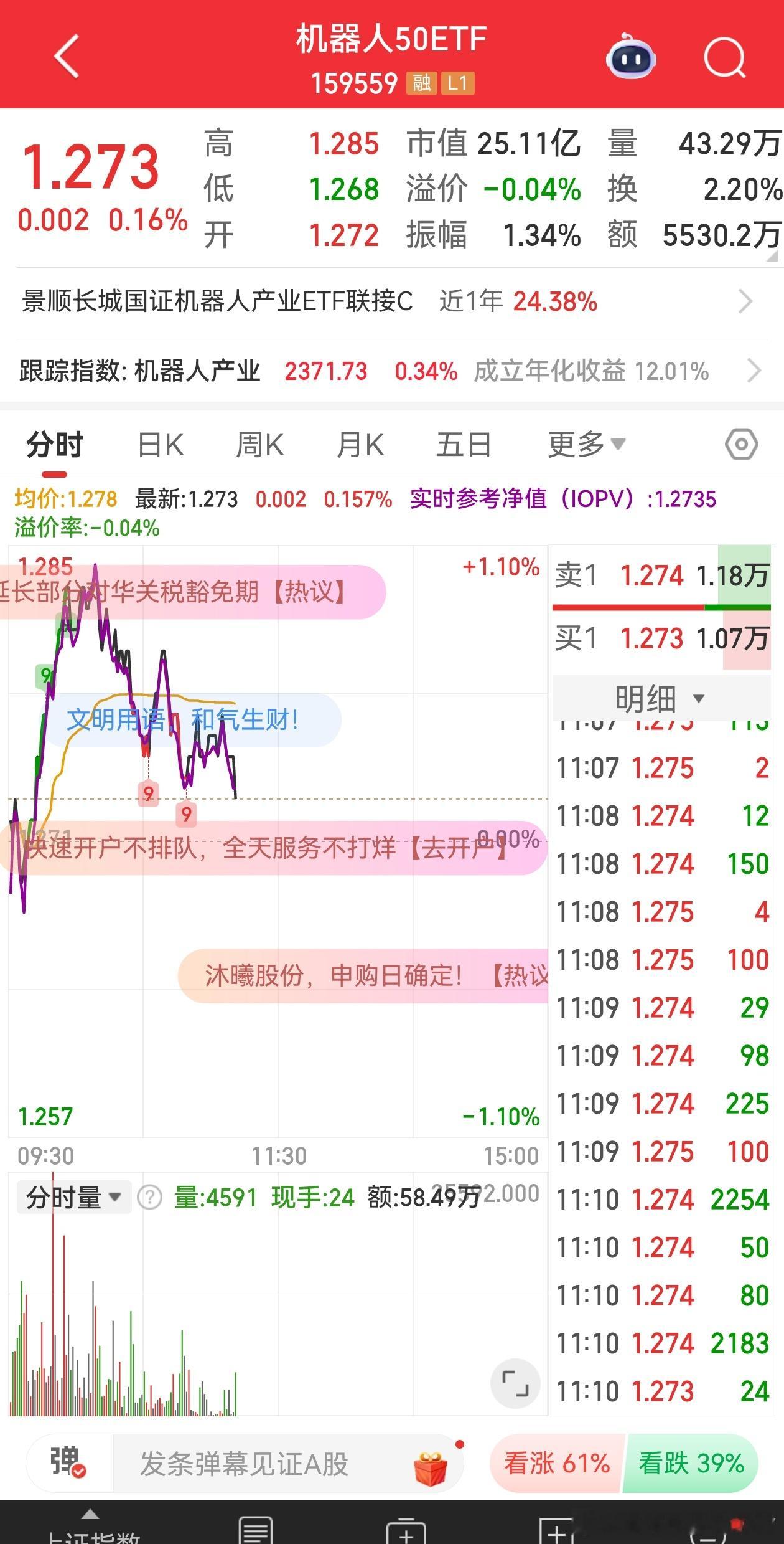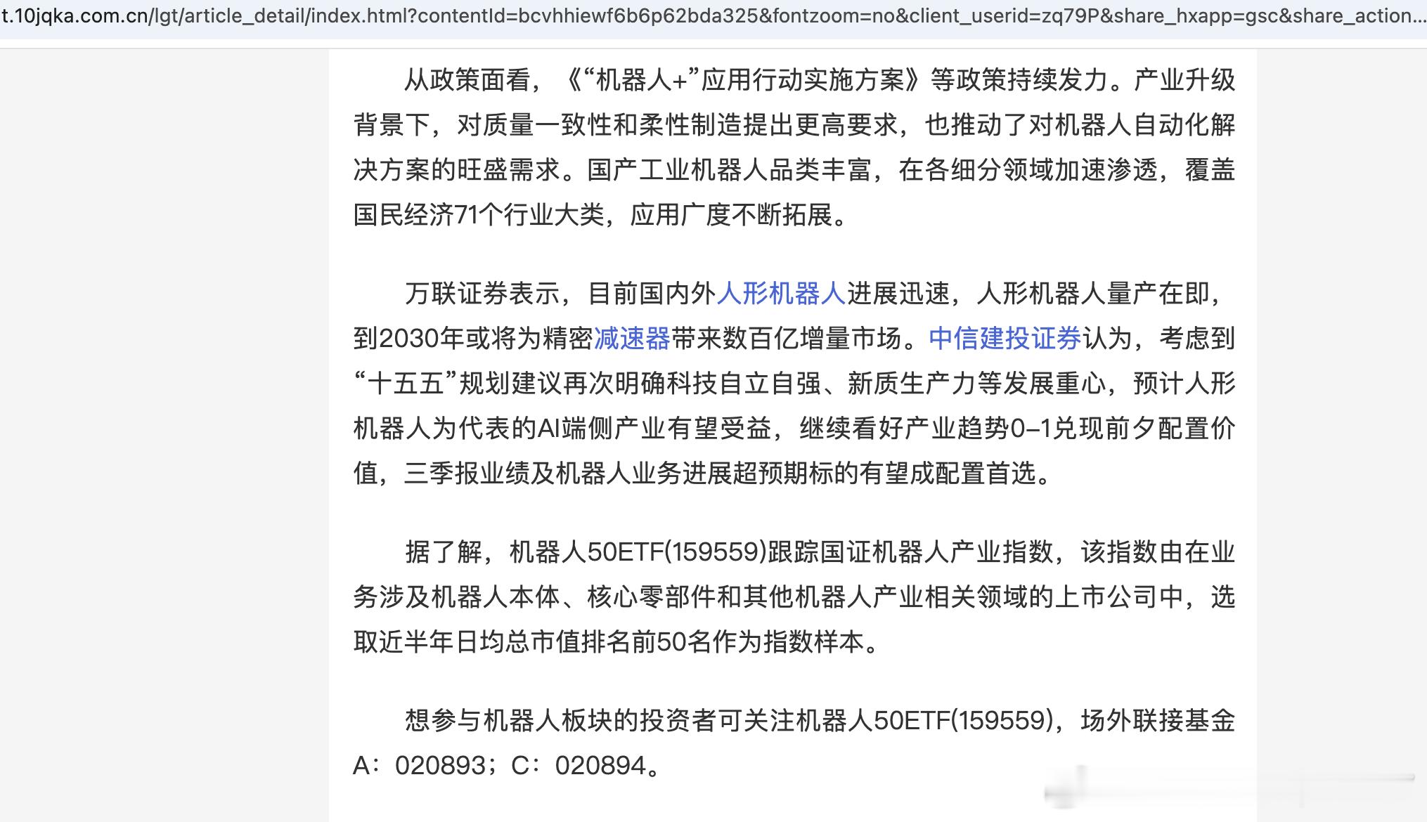 这波反弹,科技股走势强劲,资金年底趁科技股回调,已经开始入场布局。今天更有消息,首批科创创业机器人ETF获批,中证科创创业机器人指数覆盖40家硬科技企业,长期资金加速布局。特斯拉Optimus三代即将发布,国产企业如宇树科技、优必选获亿元级订单,人形机器人产业化进程超预期。2025年1-10月中国工业机器人产量达60.27万台,同比增长28.8%,出口额激增54.9%,全球新装机量逆势增长5%。家用机器人市场规模年增30%。人形机器人预计2026年量产超10万台,2035年全球销量或达600万-1000万台。既然有新的机器人ETF获批,那提前布局机器人,也不错。如果不会选股,可以考虑机器人50ETF(159559)