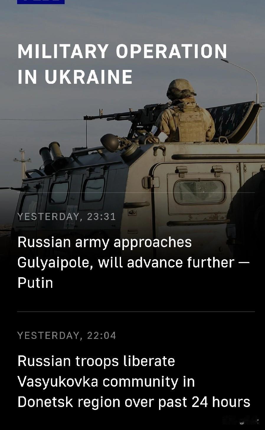 俄军双线推进获突破:逼近扎波罗热枢纽并解放顿涅茨克定居点 11月27日,俄罗斯在乌克兰特别军事行动中取得双重进展:俄总统普京证实,俄军东部集团军群已突破扎波罗热州北部防线,距战略后勤枢纽古利亚伊波列镇仅1.5至2公里,部队将持续推进;同日,俄国防部通报,南部集团军群在过去24小时内解放顿涅茨克州瓦休科夫卡社区,期间造成乌军230余人伤亡,摧毁坦克1辆及装甲战车7辆。 扎波罗热州作为俄乌冲突关键战场,其北部防御工事自2014年起逐步构建,形成大型防御体系,目前由乌军第聂伯河集团军群驻守。古利亚伊波列镇因地处扎波罗热州与第聂伯罗彼得罗夫斯克州边境,是乌军后勤补给重要节点,控制该镇可进一步切断乌军前线物资通道;而顿涅茨克州瓦休科夫卡社区位于顿巴斯地区核心地带,长期以来是俄乌双方反复争夺的战略要地。 据报道,普京在记者会上强调,俄军推进速度“非常迅速”,突破防线得益于将士的英勇作战,即便不攻占古利亚伊波列镇,部队也将继续向既定目标推进;俄国防部通过官方渠道发布战报,明确南部集团军群的作战成果及乌军损失。 ​ 截至发稿,乌克兰官方尚未对古利亚伊波列镇局势及瓦休科夫卡社区被解放一事作出公开回应。此前乌军曾多次表示将坚守扎波罗热州及顿涅茨克州防线,抵御俄军进攻。 俄军在扎波罗热州和顿涅茨克州的双线突破,可能进一步改变当地战场态势。分析认为,若俄军成功控制古利亚伊波列镇,将极大削弱乌军在扎波罗热州的防御能力;而顿涅茨克州瓦休科夫卡社区的解放,将为俄军后续向顿巴斯地区纵深推进奠定基础。短期内,俄乌双方或在扎波罗热州北部及顿涅茨克州展开更激烈的攻防对抗,战场局势有望持续升级。