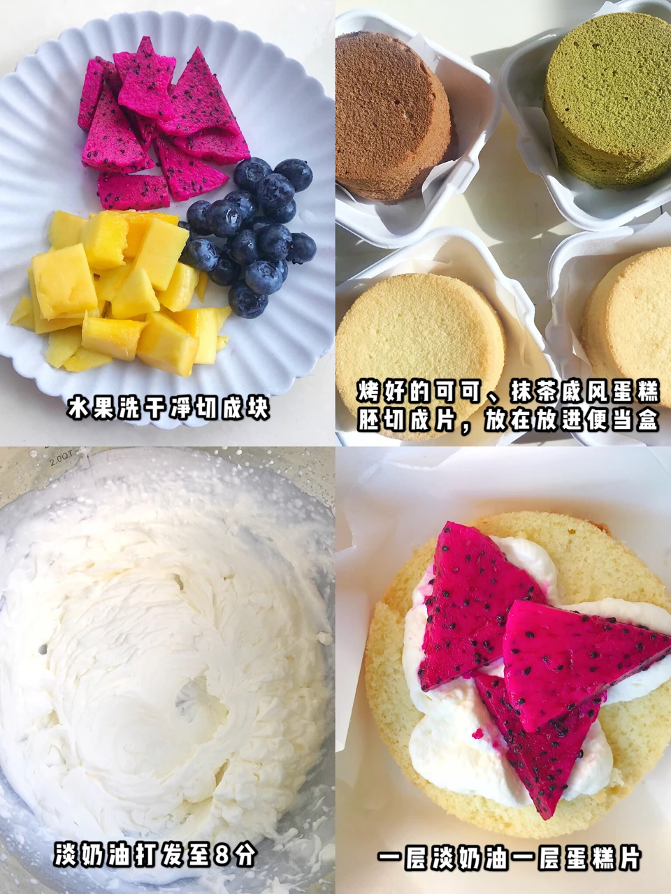 在家自制火遍ins的网红便当盒蛋糕✨内附抹茶、可可戚风