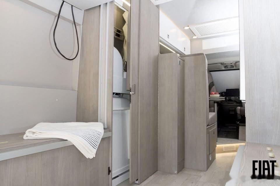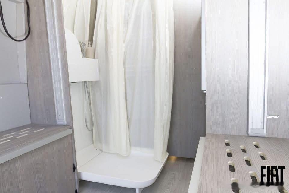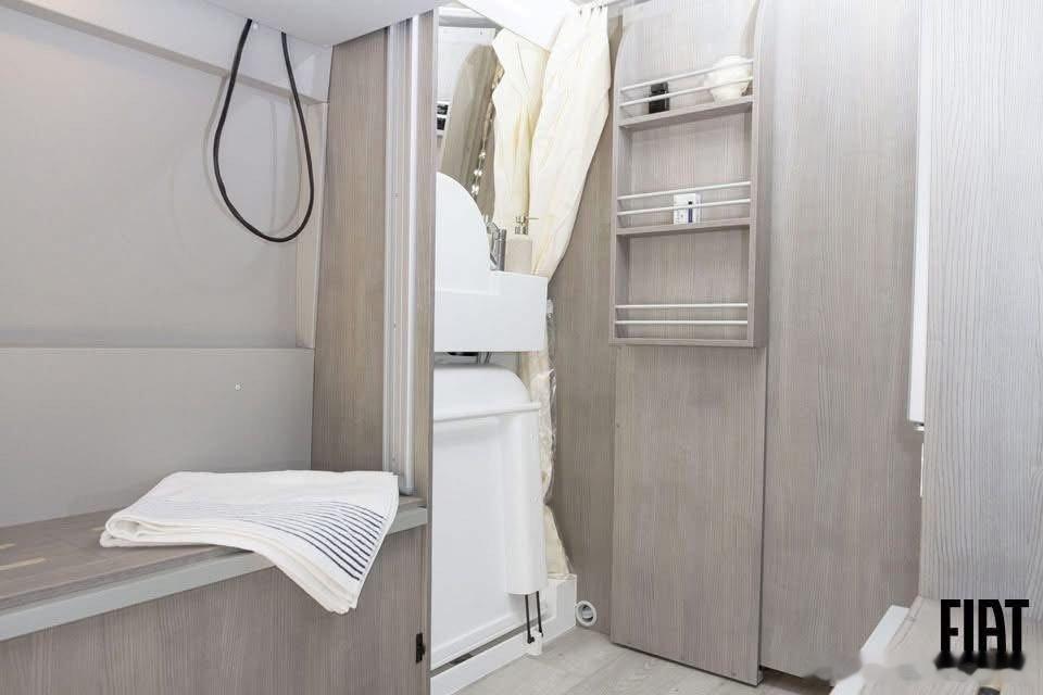 大幅增加了活动空间,但是好像没有固定马桶了,也可能隐藏起来了?如果能解决洗澡水喷出来的话,这是个不错的方案