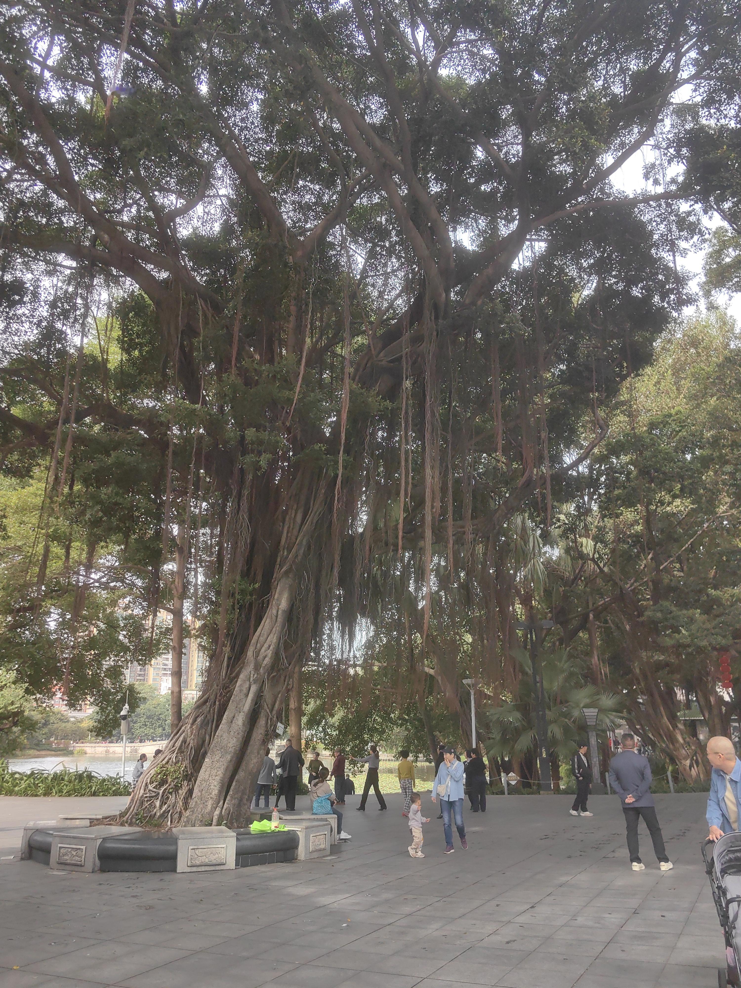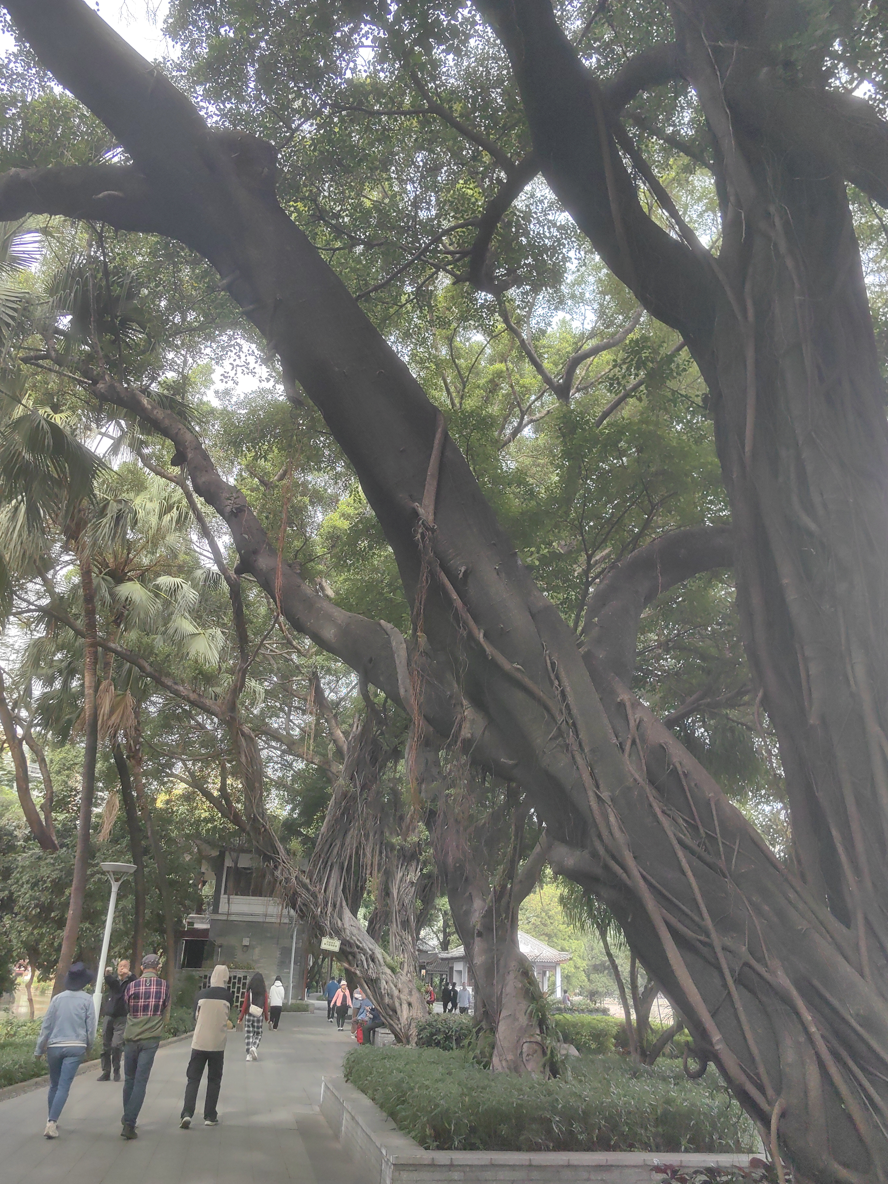 今天虽然是工作日。公园里仍然人来人往,非常热闹。有唱粤剧的,有跳广场舞的,有在一起跳踢毽子弟。也有坐在湖边晒太阳闲聊的。