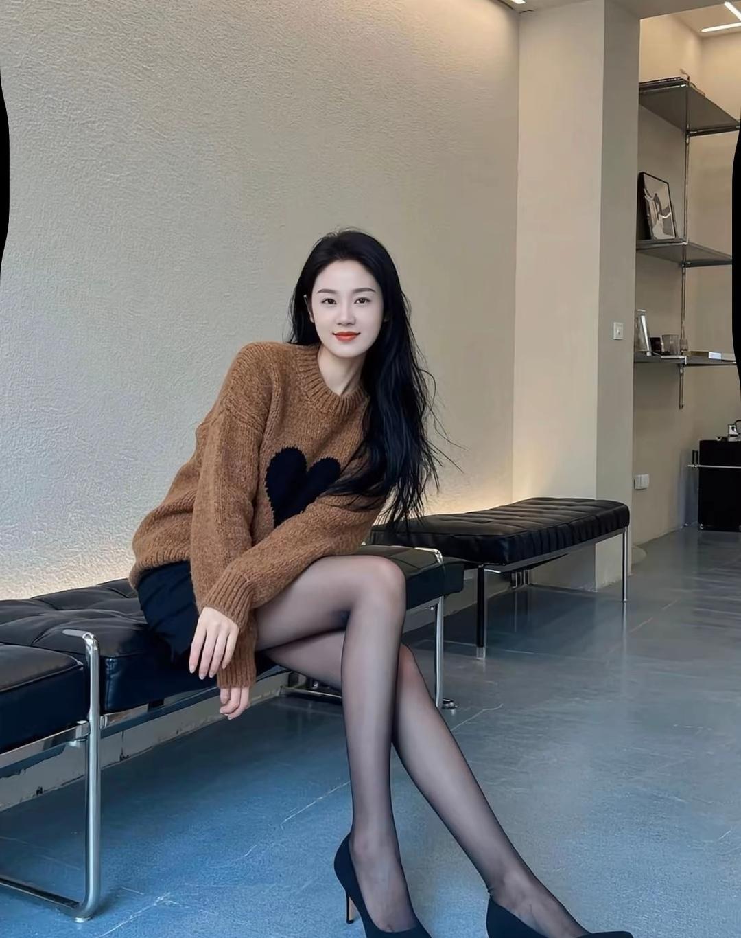 房间里的暖光从墙缝漫出来,把焦糖色毛衣的绒线烘得软成一团云,我把下巴轻轻抵在臂弯里,长椅的皮革贴着后背,带着恰到好处的凉,和毛衣的暖揉成了圈松弛的涟漪。 黑丝绒短裙的裙摆垂在椅边,被风掀出小小的弧度,像把这房间里的安静都兜进了褶皱里。脚边的地板泛着浅灰的光,映着高跟鞋鞋跟的细影,和远处置物架上相框的金边,一起在暖光里浮成模糊的温柔。 我抬手拨了拨垂到颊边的头发,指尖碰着被烘暖的发梢,软乎乎的温度顺着指腹漫进心里。房间里没有多余的声响,只有暖光漫过毛衣的轻响,和我呼吸里混着的、被焦糖色裹住的慵懒——不用急着起身,不用想接下来要做什么,只需要靠着长椅,接住这房间里,被暖光泡软的温柔。