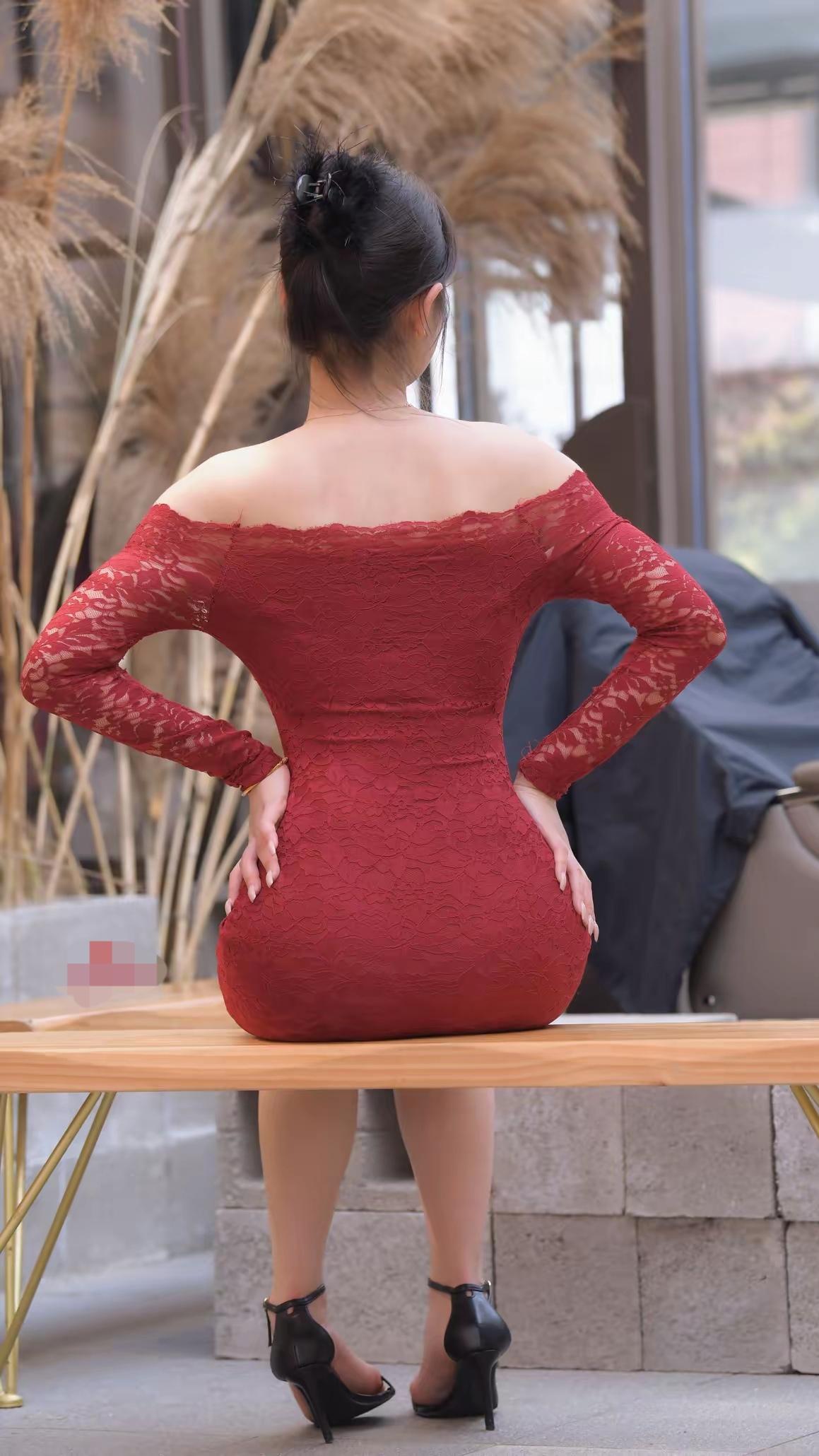 红衣美人倚长凳,静待春风入画来。